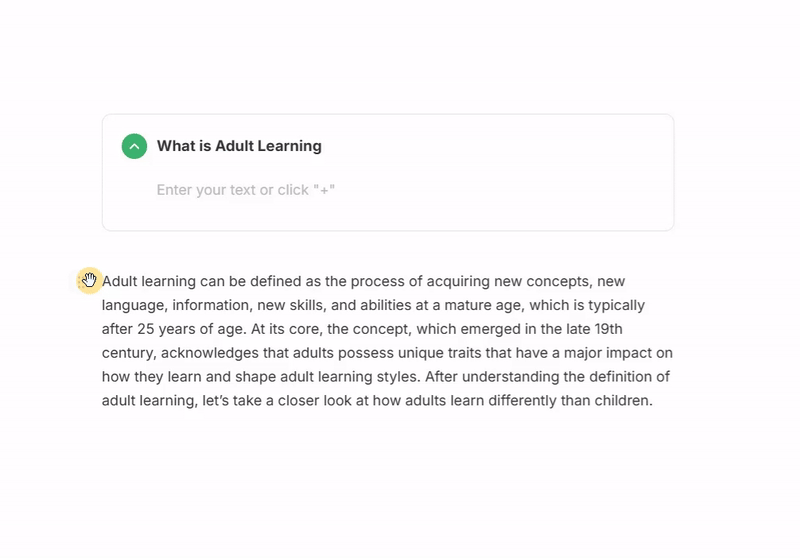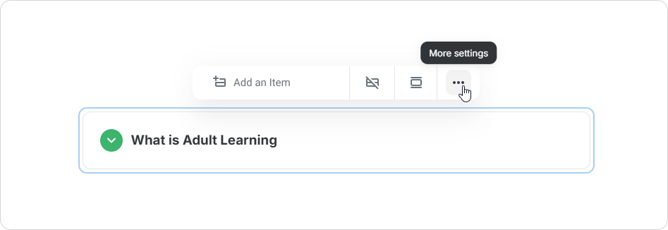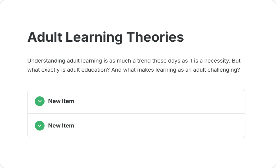"Accordion" design element enhances content organization for pages in iSpring Cloud. Accordion allows you to hide additional or secondary information that may not be relevant to every user.