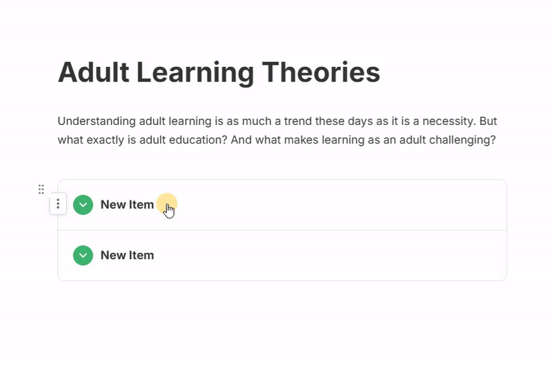 By default, two items will automatically be added to your Accordion.