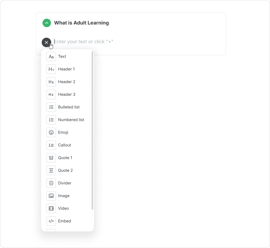 - Select the type of content you want to add from the drop-down menu.