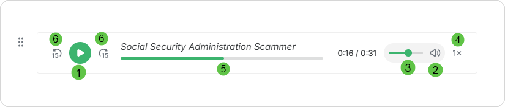 By default, the audio player is in the 'Title Only' mode. Thus, learners can only see the title of the audio clip (which you can edit).