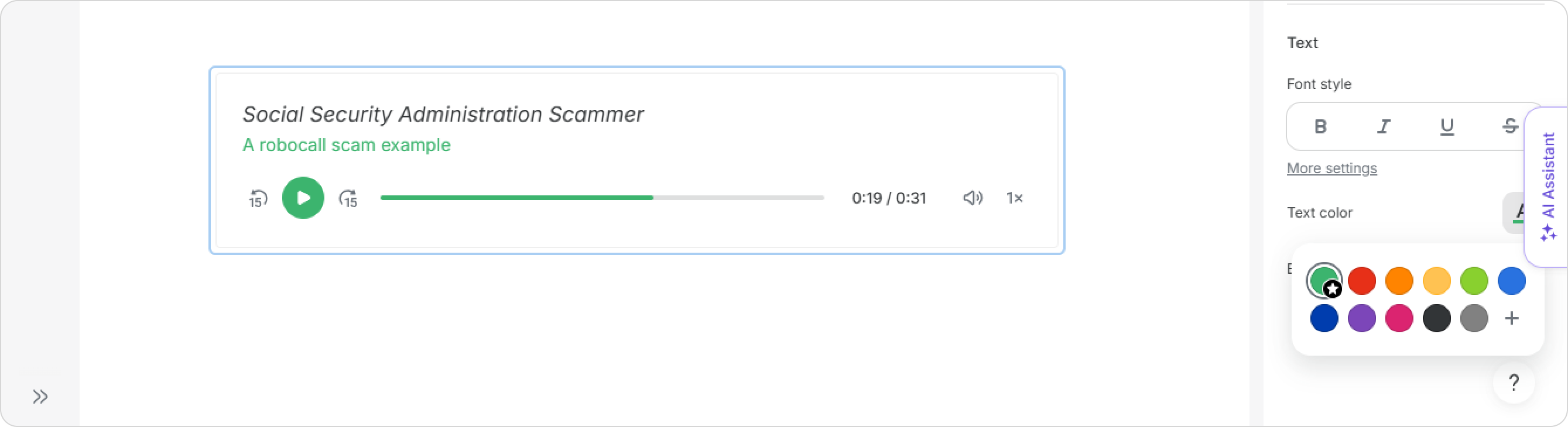 That's it! You've added an audio block to a course.
