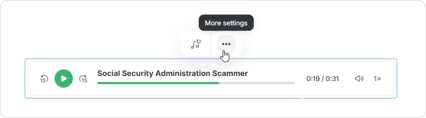 - Skip 15 seconds backward or forward.