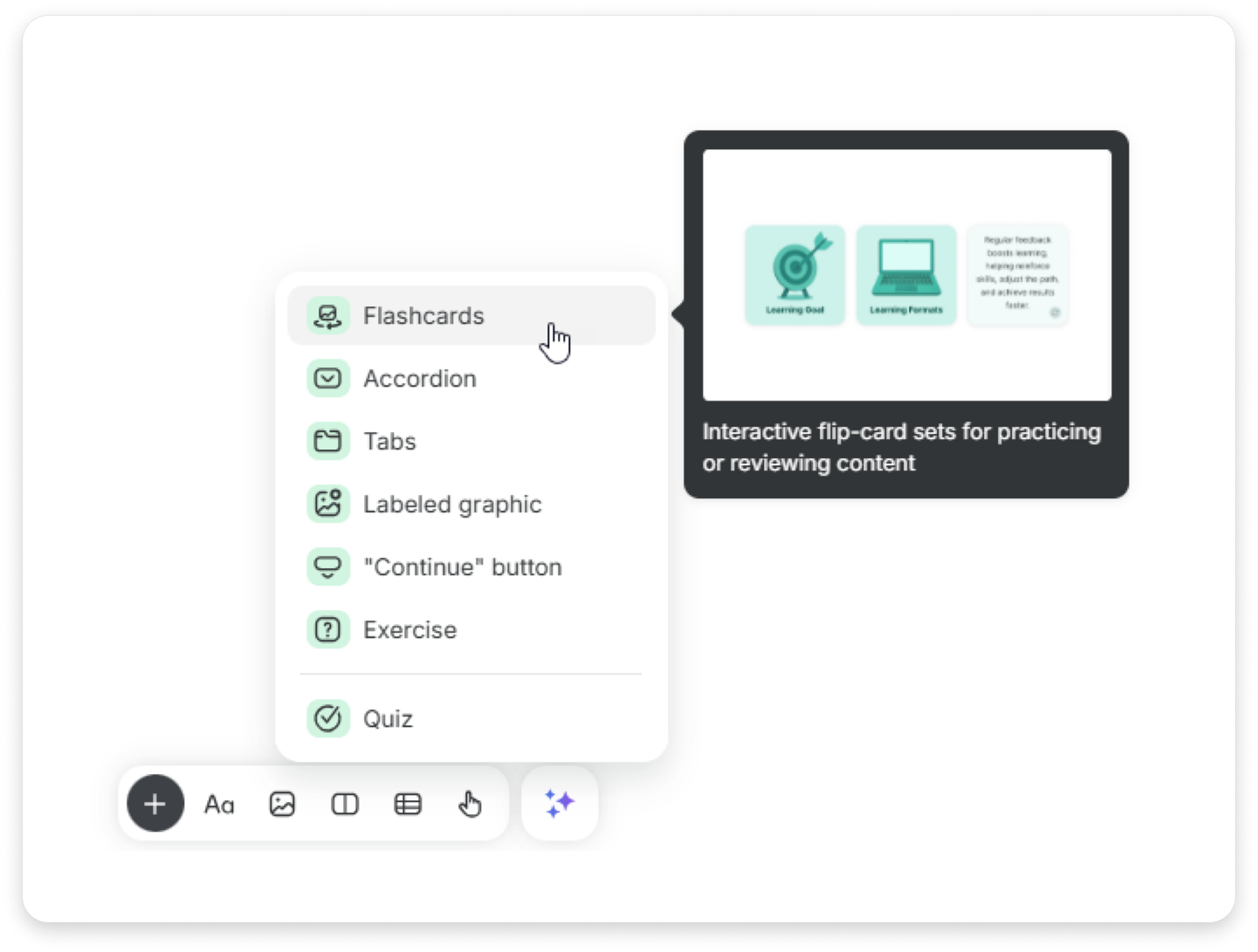 - In the toolbar, navigate to Interactions and select Flashcards.