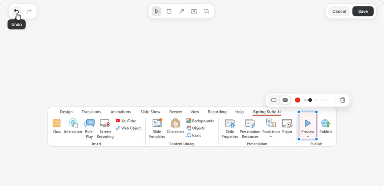 You can choose different cursor and gesture styles to show how users interact with the interface.