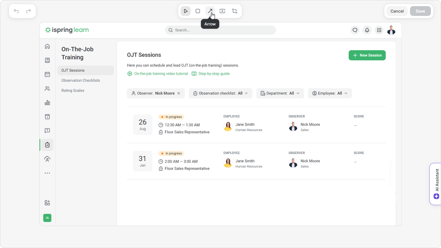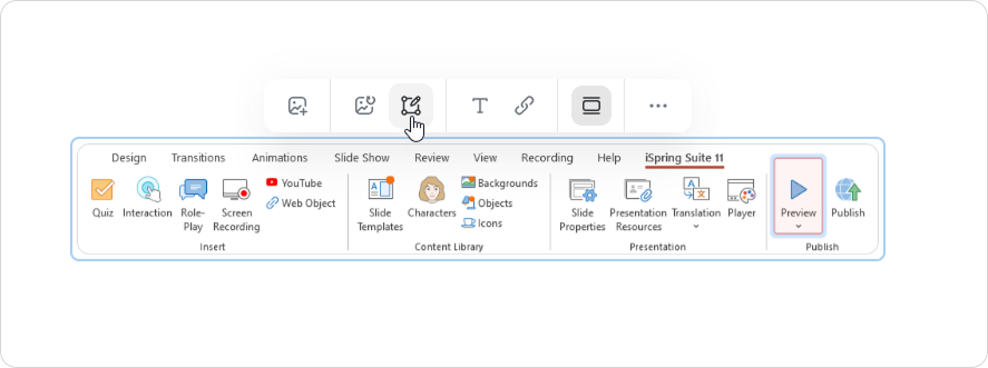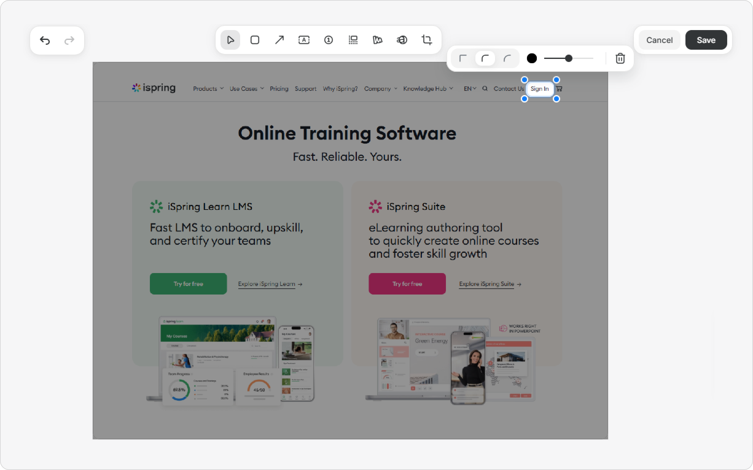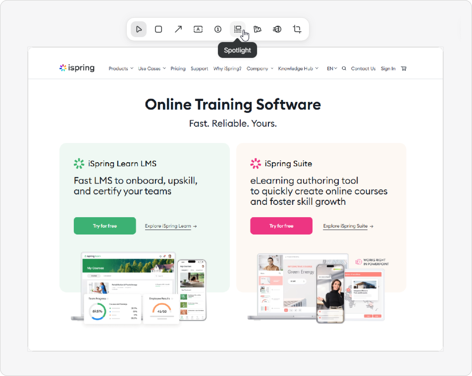 The magnifying glass is perfect for highlighting small elements like buttons or URLs that learners could easily miss.