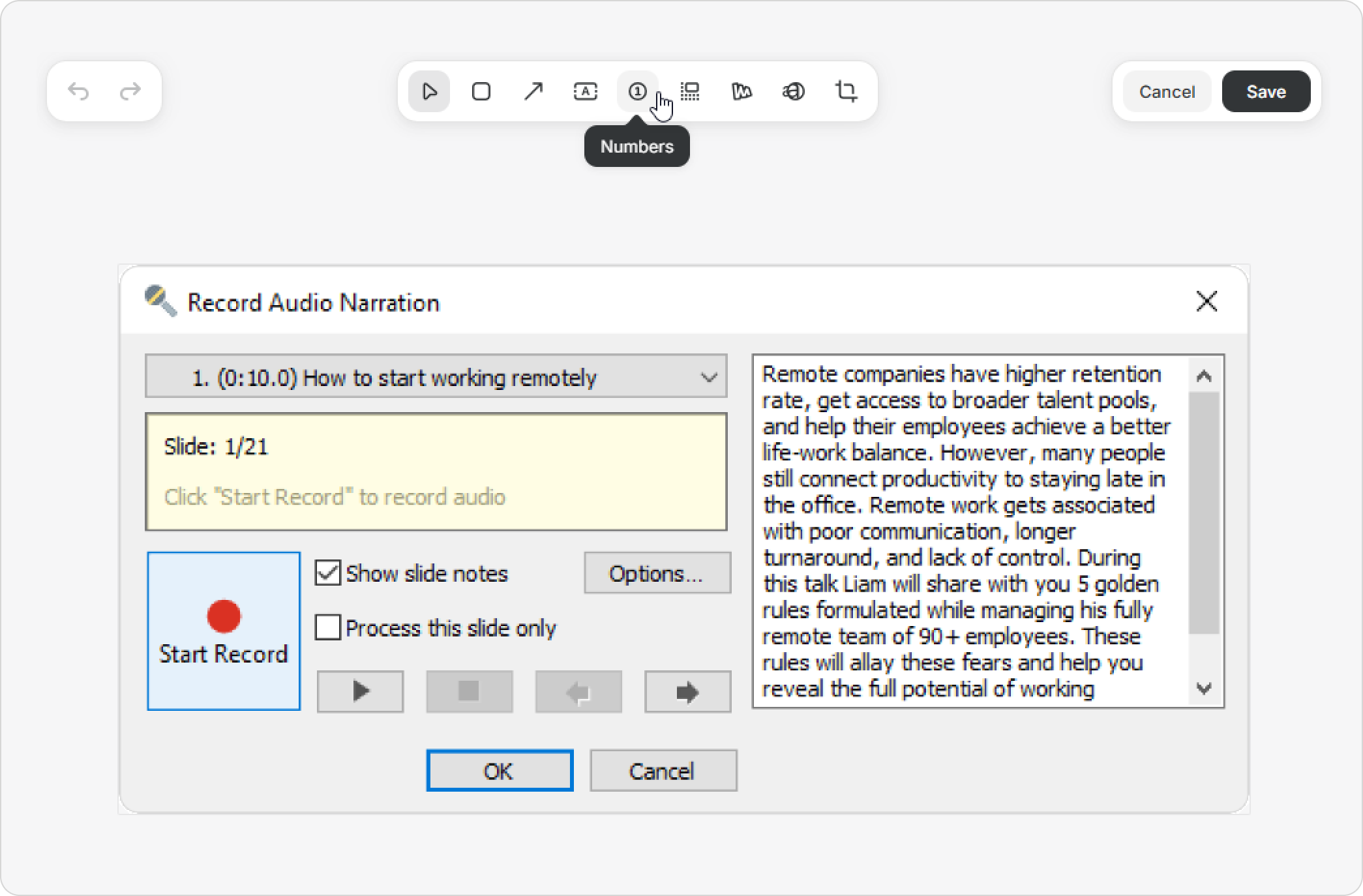 The Numbers tool lets you show each step directly on the image, making it easier for readers to follow the instructions.
