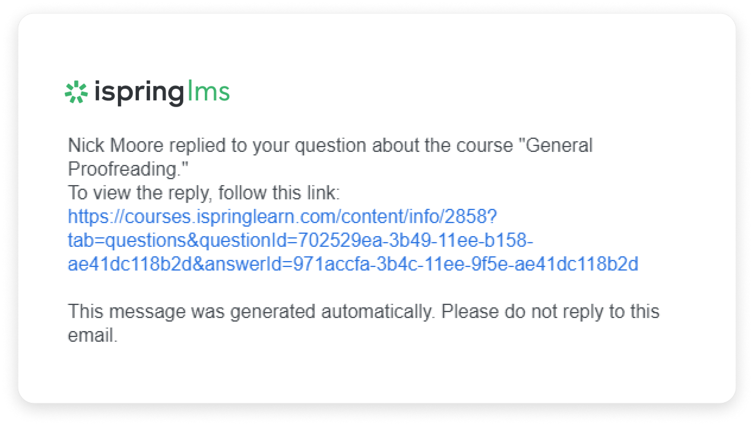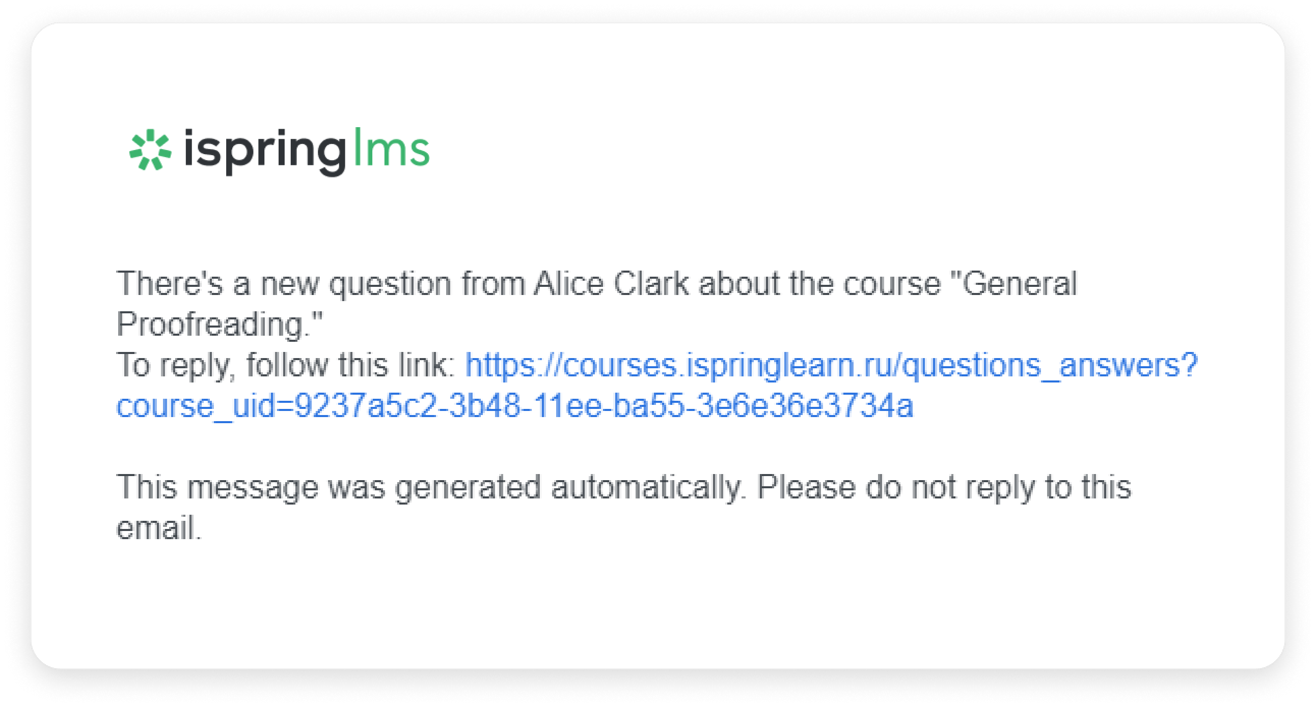 If an employee asks a question about a course, the instructor receives an email notification.