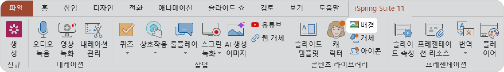 - 먼저 툴바에서 배경 버튼을 클릭하세요.