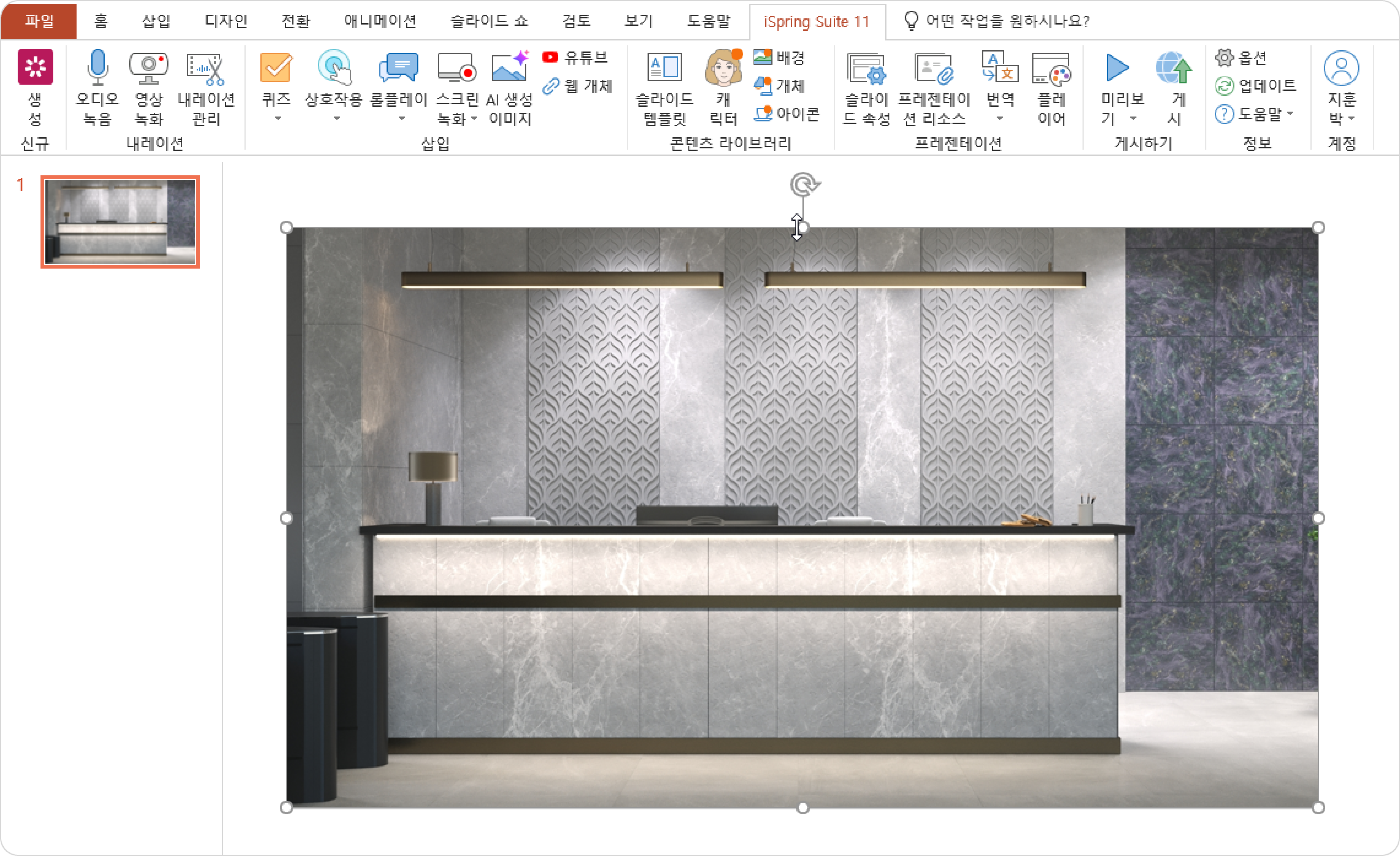 - 슬라이드에 배경이 추가되었습니다. 슬라이드에서 크기와 위치를 변경하세요.