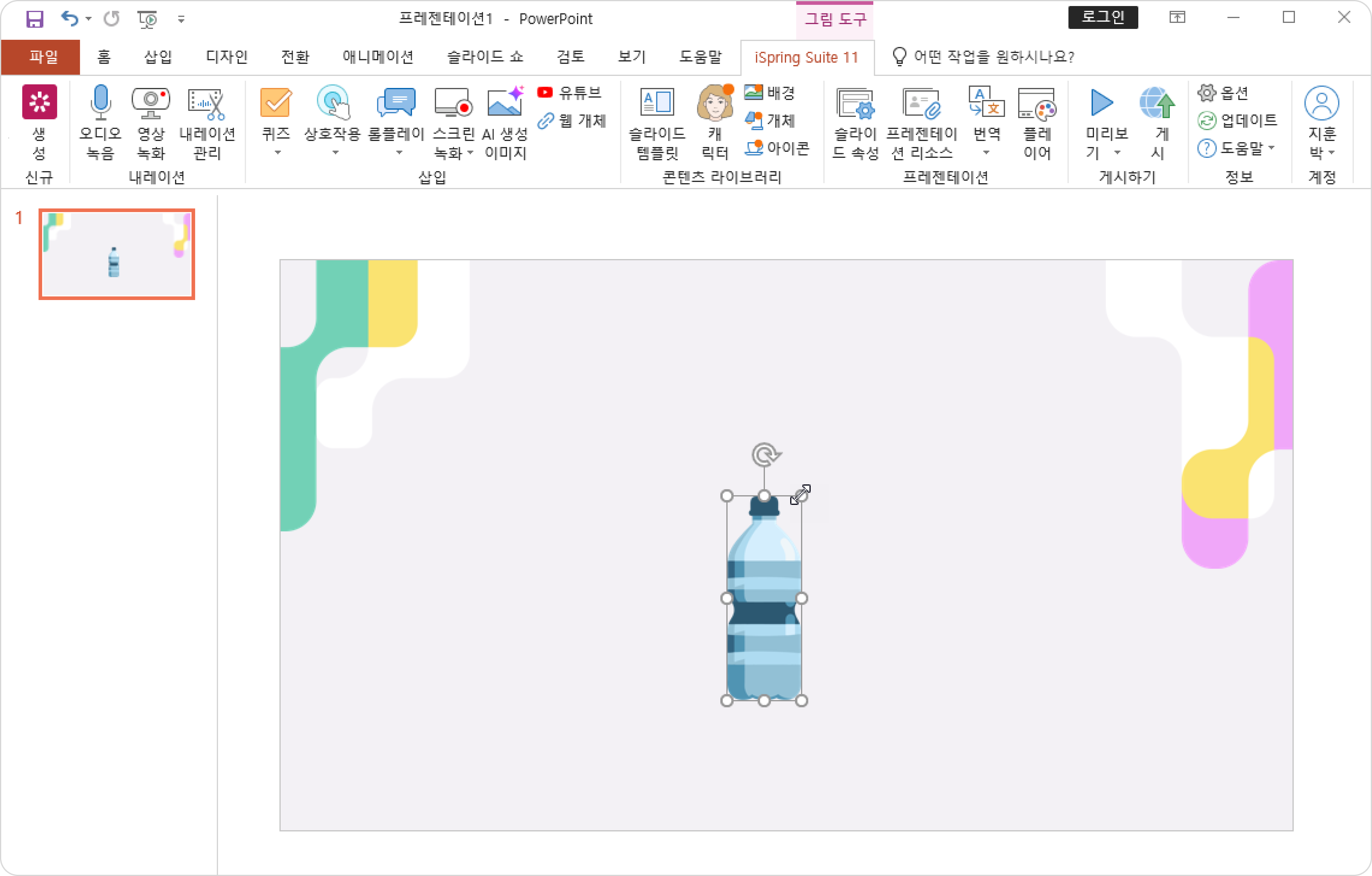 - 슬라이드에 사물이 추가되었습니다. 슬라이드에서 크기와 위치를 변경하세요.