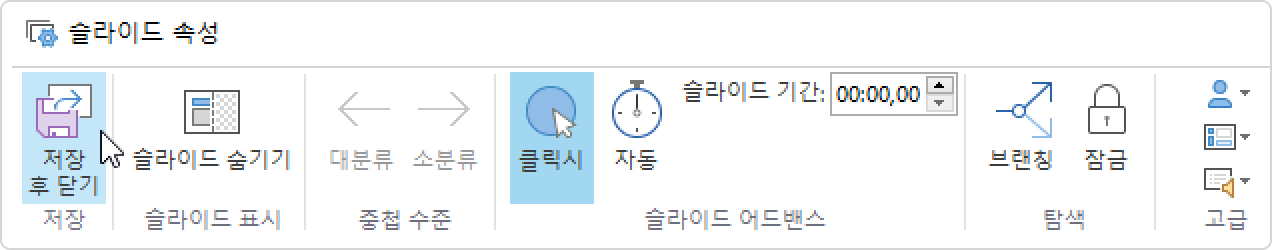 - iSpring Suite 툴바에서 슬라이드 속성 버튼을 클릭하세요.