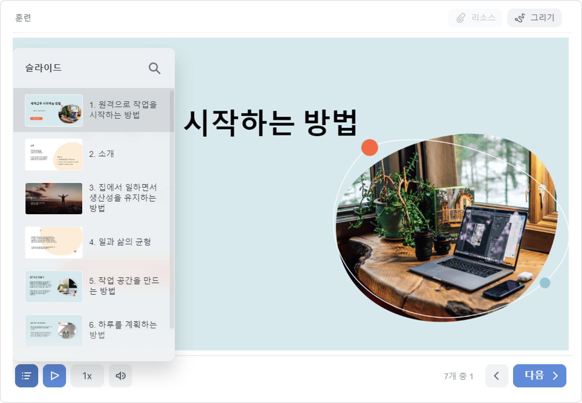 슬라이드 제목은 플레이어의 프레젠테이션 개요에 표시됩니다. 제목은 기본적으로 파워포인트 프레젠테이션의 슬라이드 제목과 같습니다.