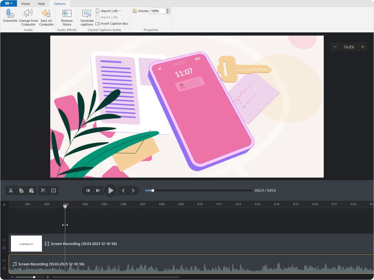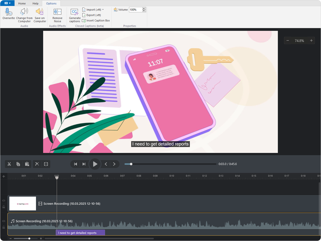 - Slide the marker to the point on the timeline where you want the captions to begin.