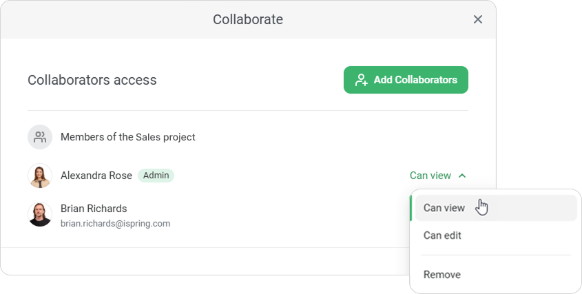 You can set individual access levels for each collaborator.