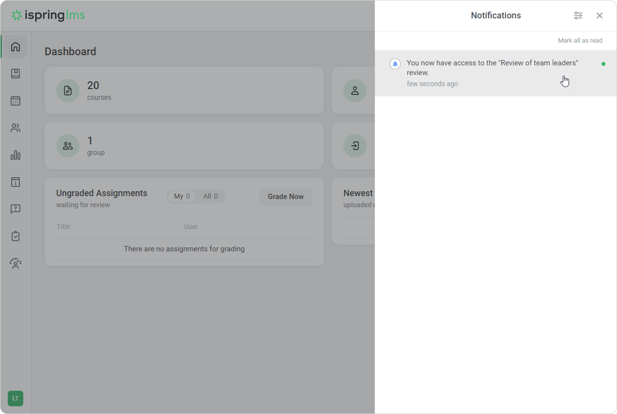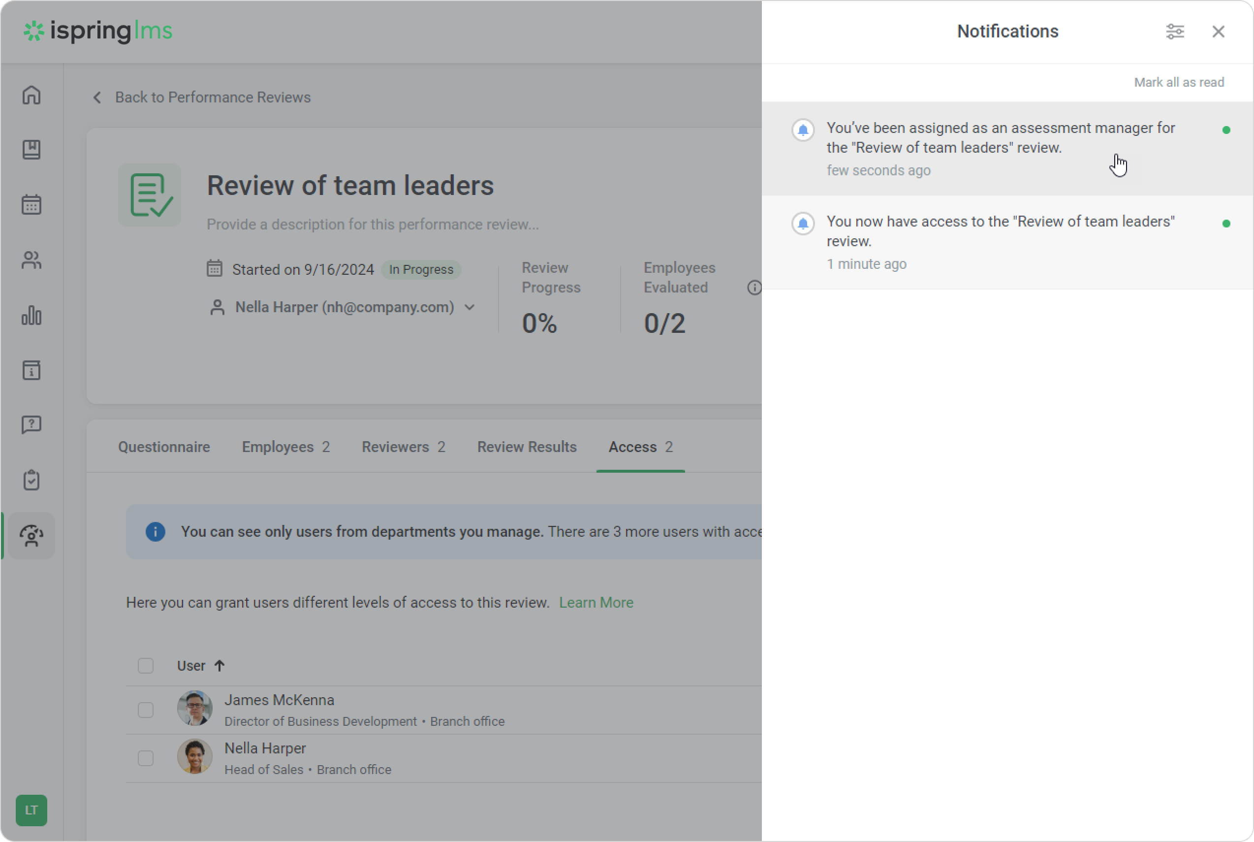 The person assigned as the assessment manager will be notified by email and on the LMS.