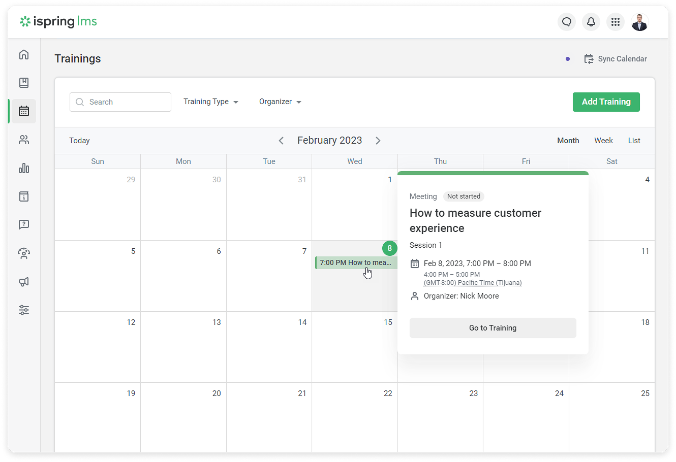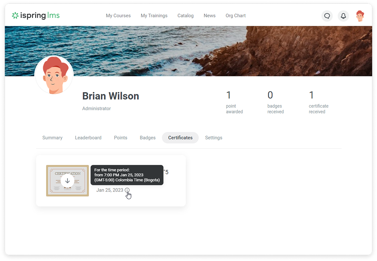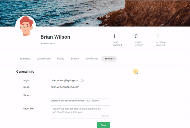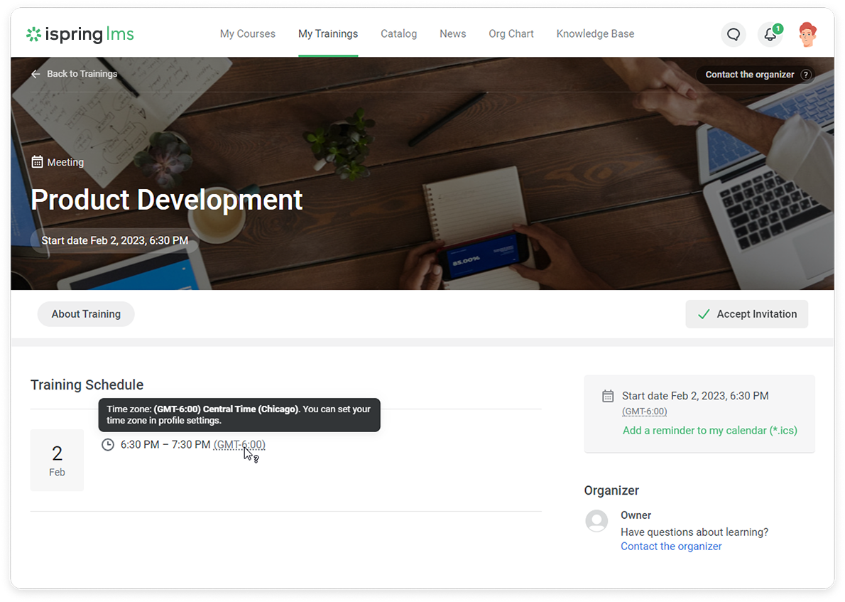 Users and admin can select their own separate time zones in their iSpring LMS accounts.