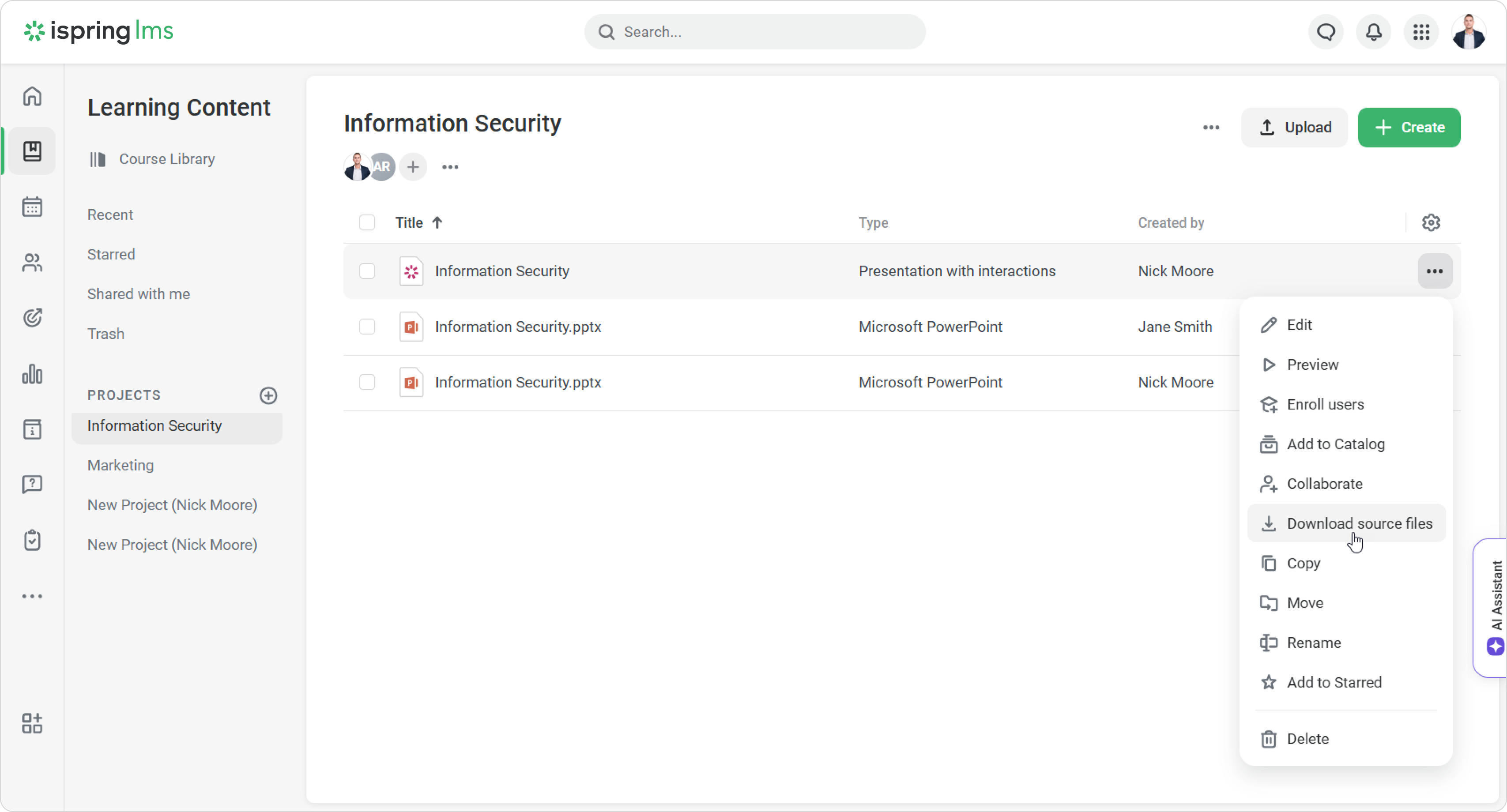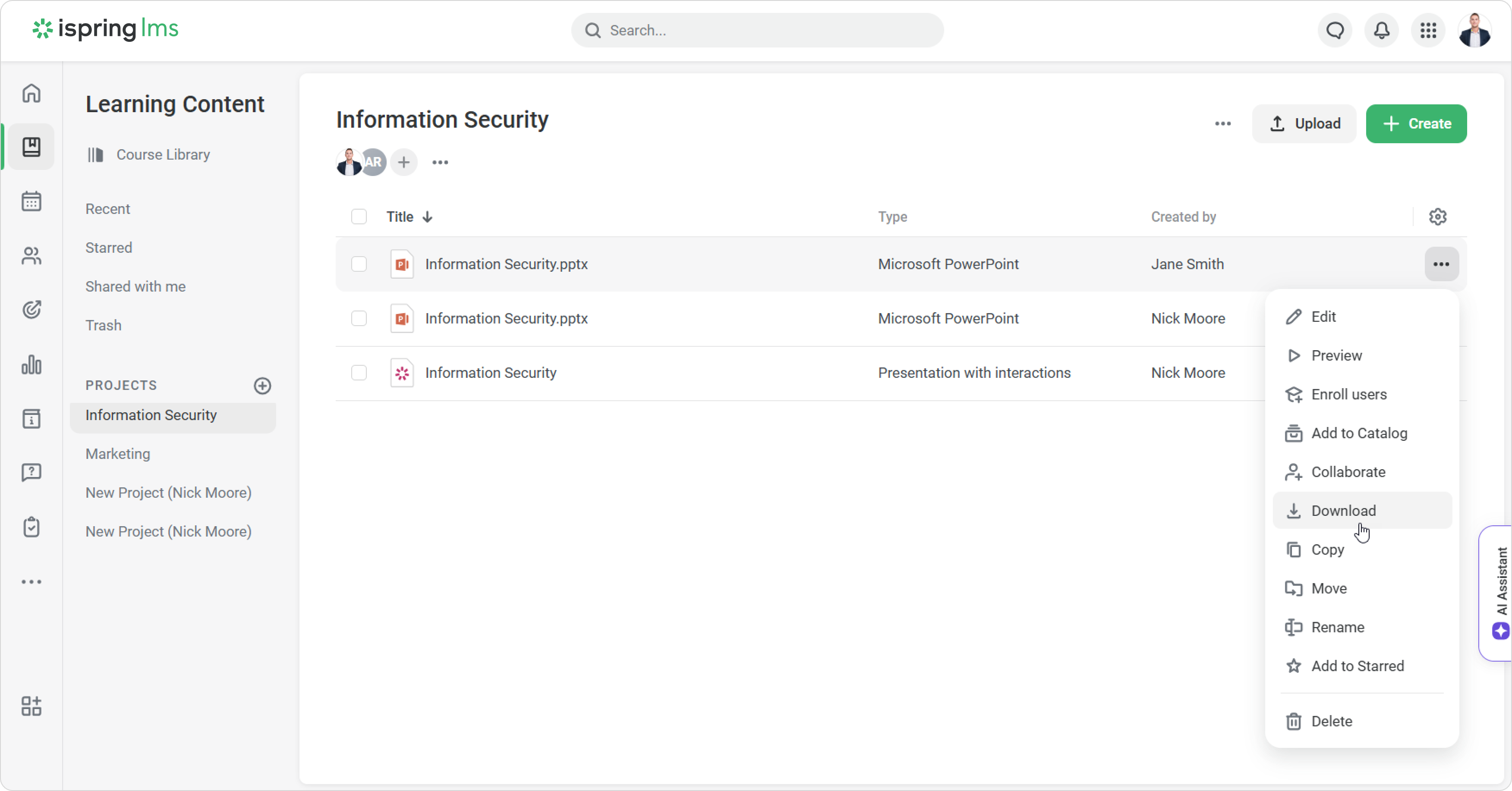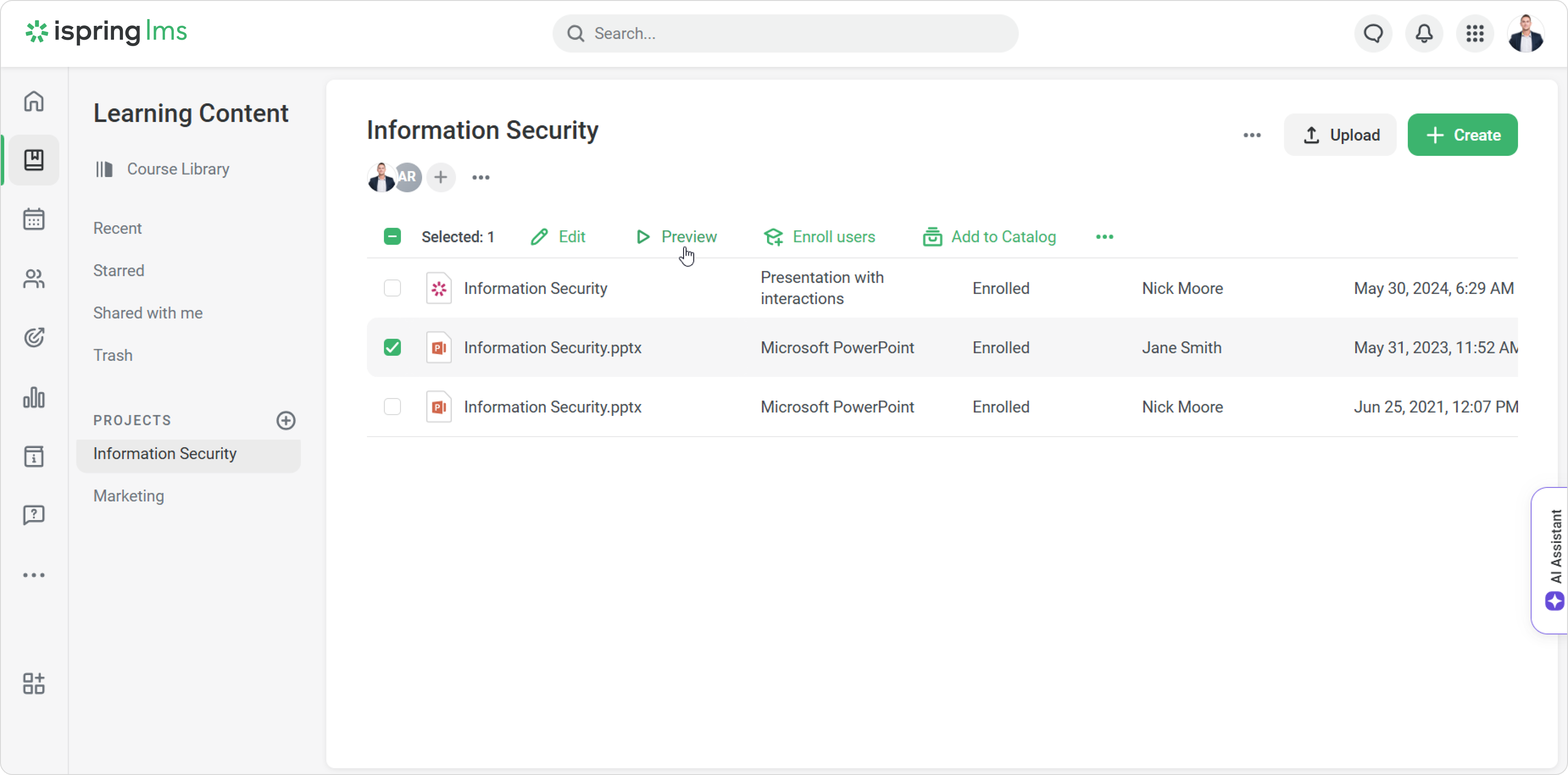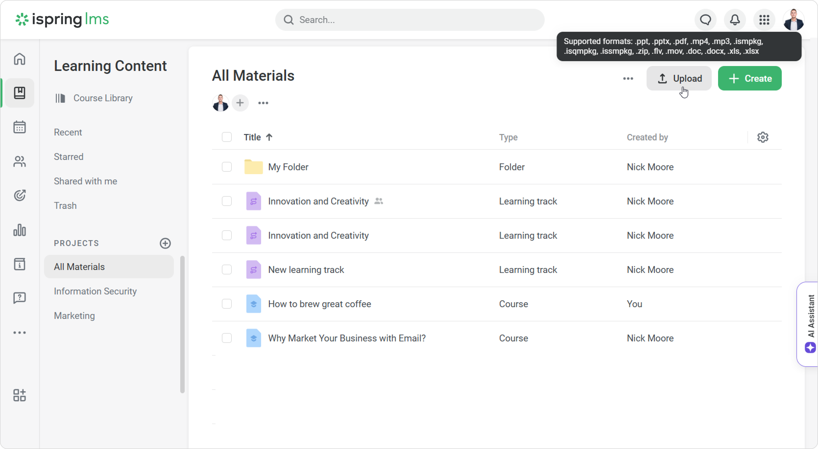 - Then go to iSpring LMS. In the Learning Content section, click Upload.