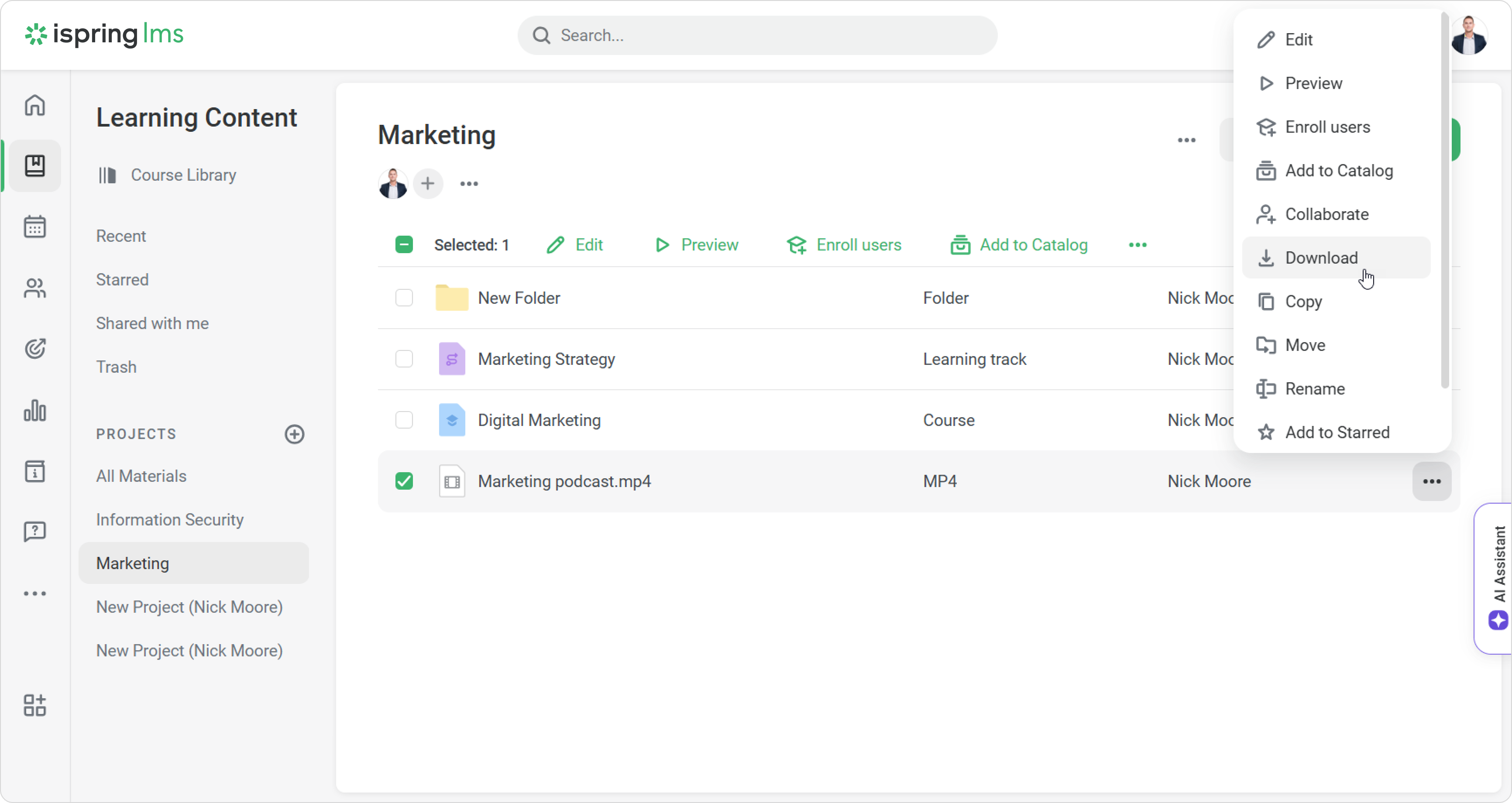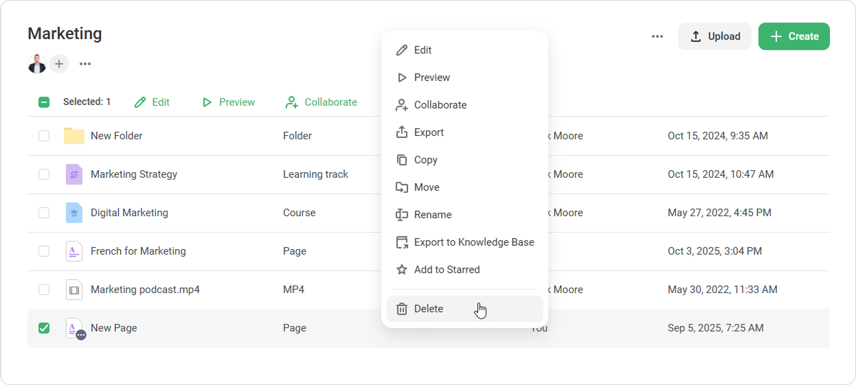 - iSpring LMS will warn you that a content with the same name already exists.