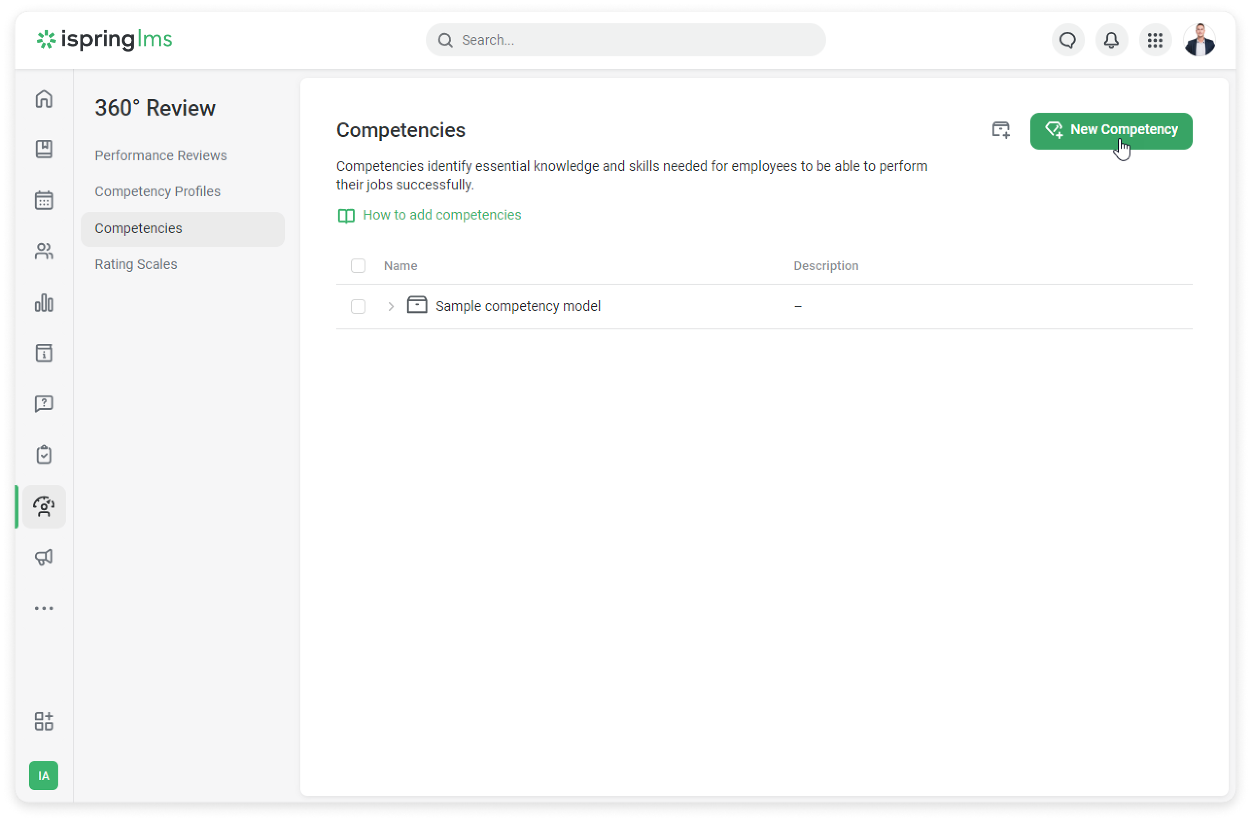 - Go to the Competencies section and click New Competency.