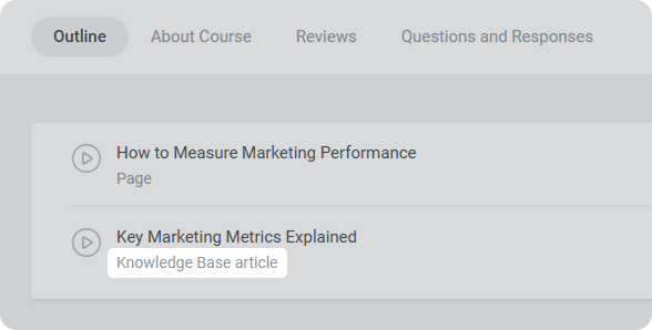 As a Link A link to the original article from the Knowledge Base will show up as a content item in your course.