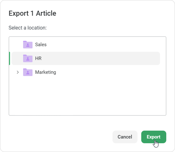 When exported from the Knowledge Base, the article is created as a separate course in Learning Content, not added to an existing course.
