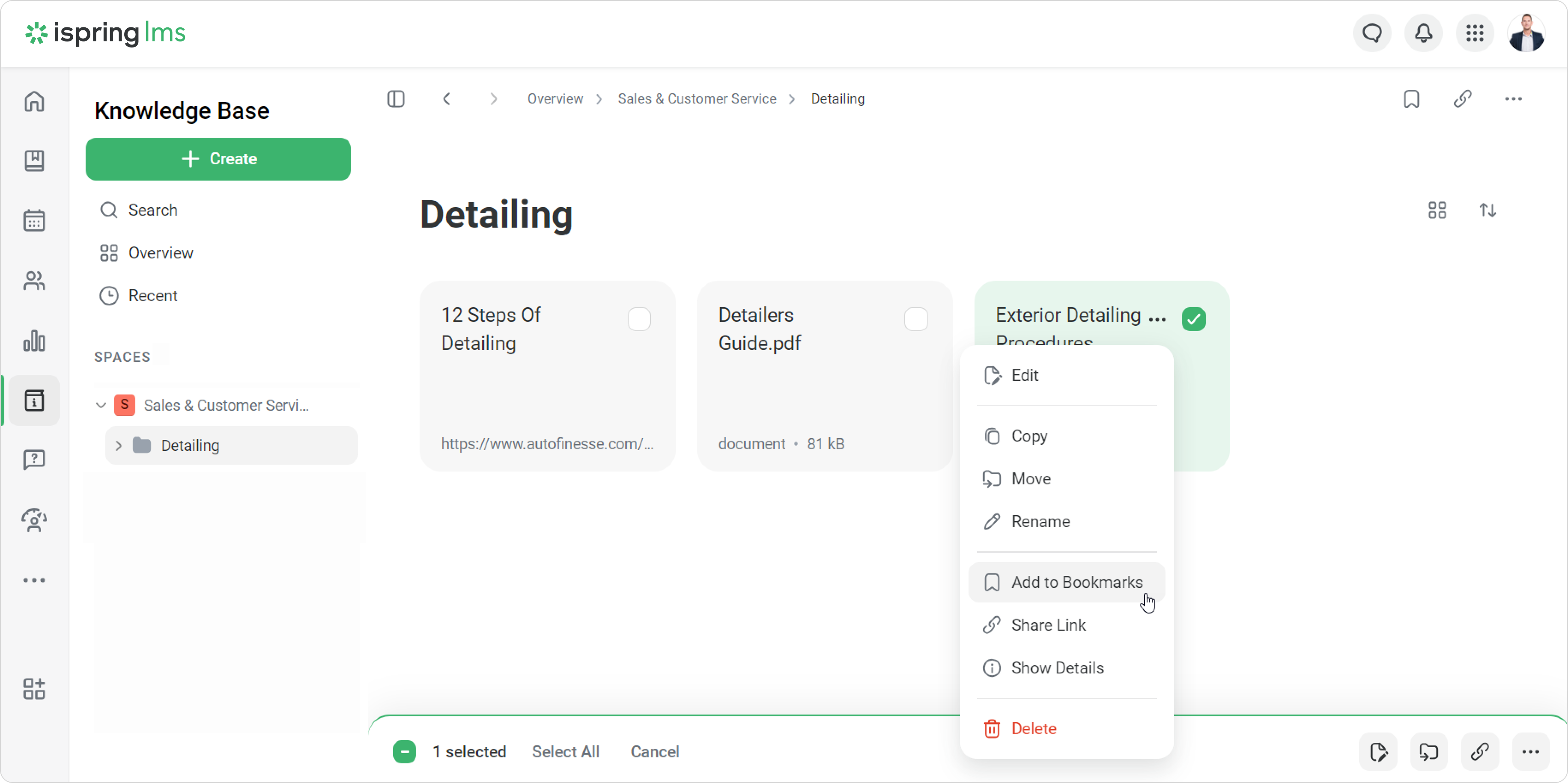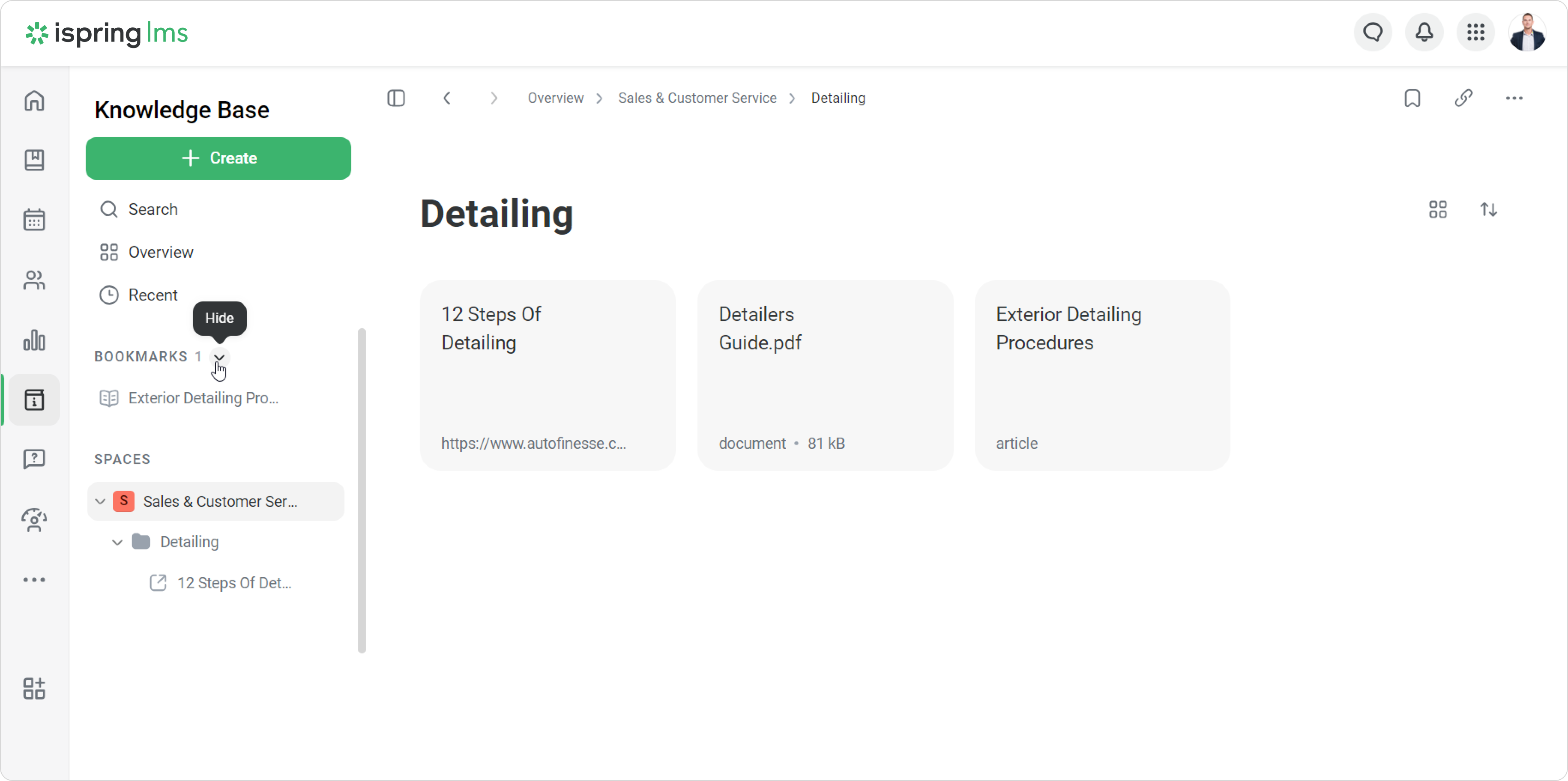 Add your go-to folders, articles, documents, and links to bookmarks and find them quicker.