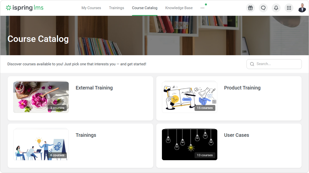 Your course or multiple items will appear in the Course Catalog section of the user portal.