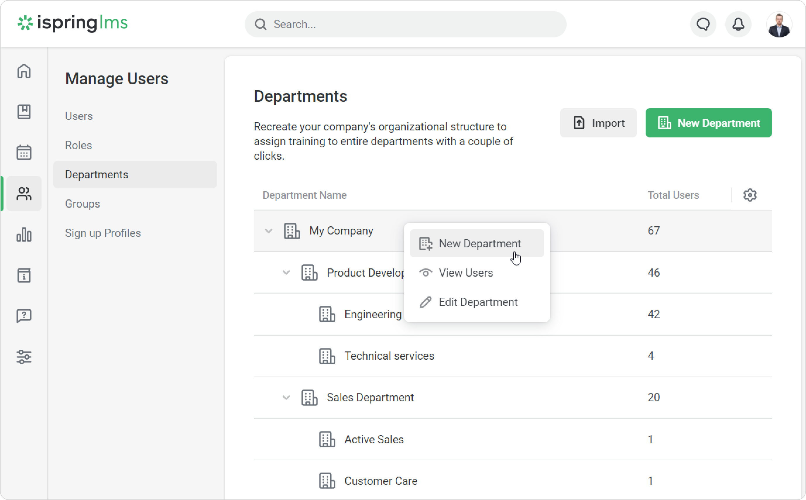 - By default, the root department is the parent one for all newly created departments. The nesting level is unlimited, and you can create as many hierarchy levels as you wish.