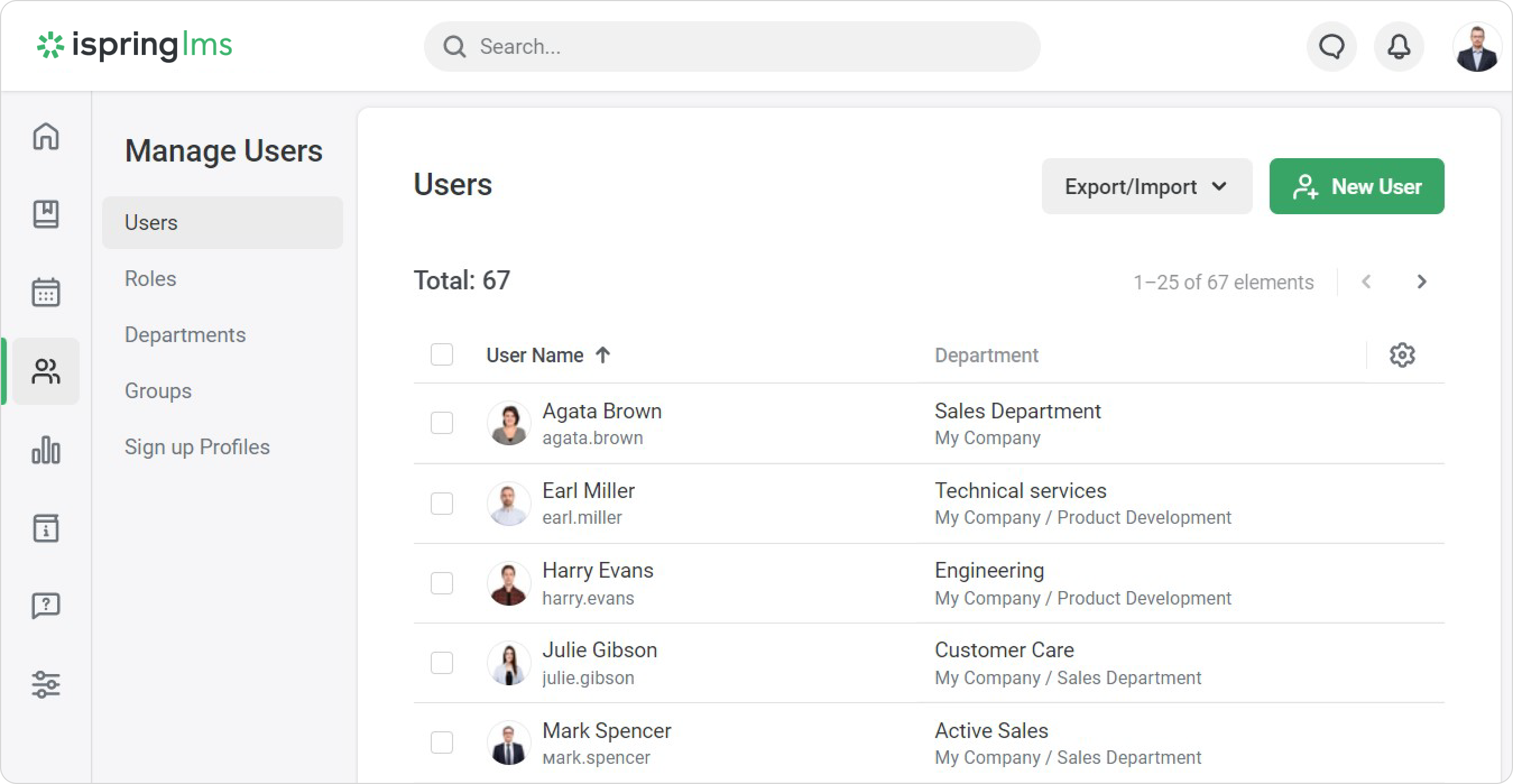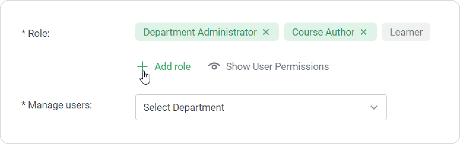 | Custom role | Learners | Departments they manage and their sub-departments |
