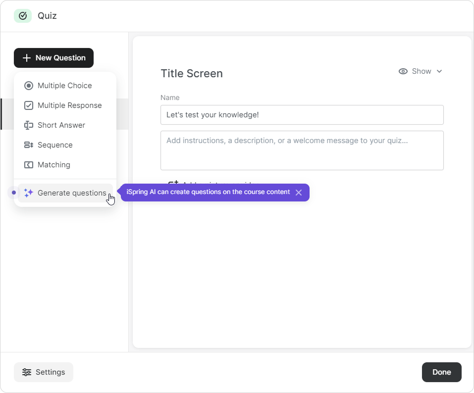 iSpring AI itself determines how many questions to generate based on a number of factors.