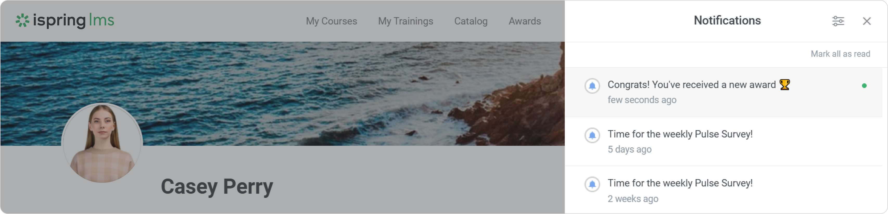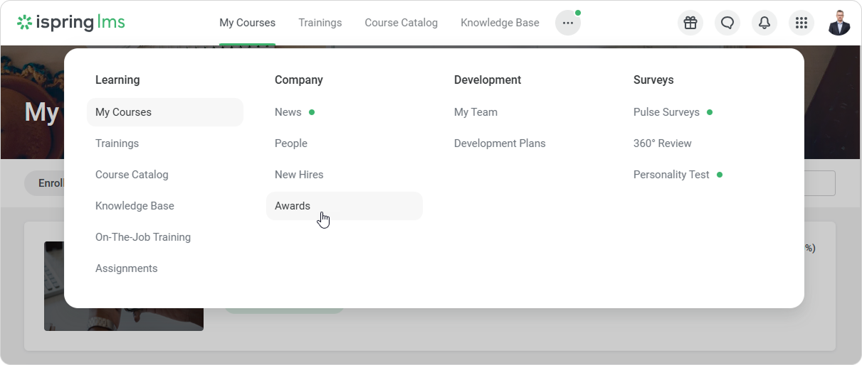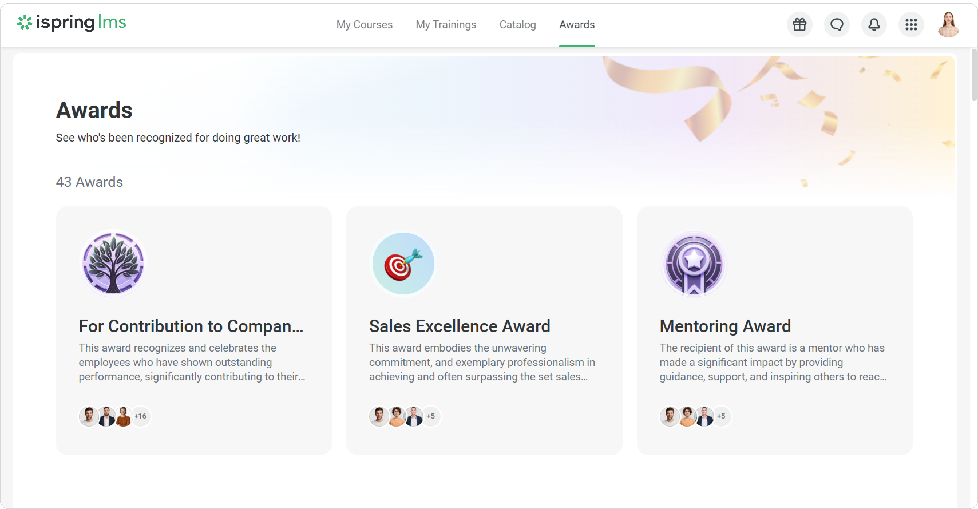 When you receive an award, you'll get a notification from iSpring LMS.