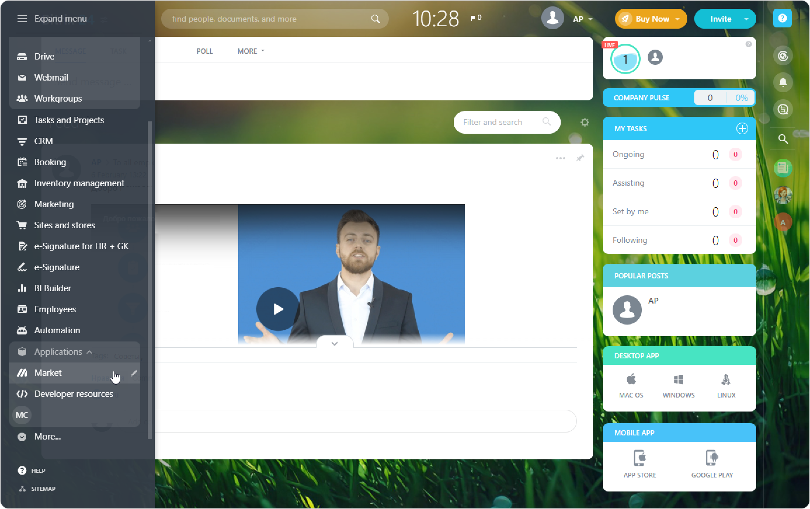 Log in to your Bitrix24 account and go to the Market tab.