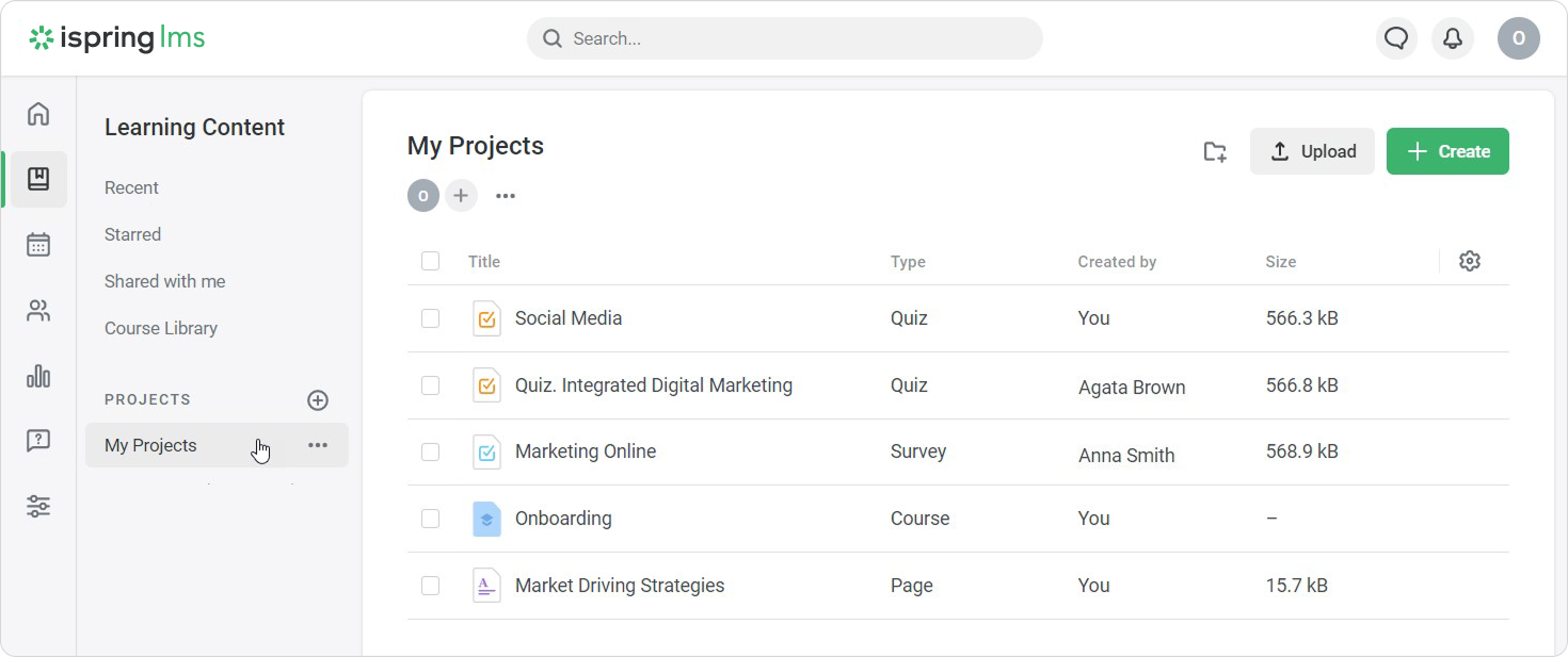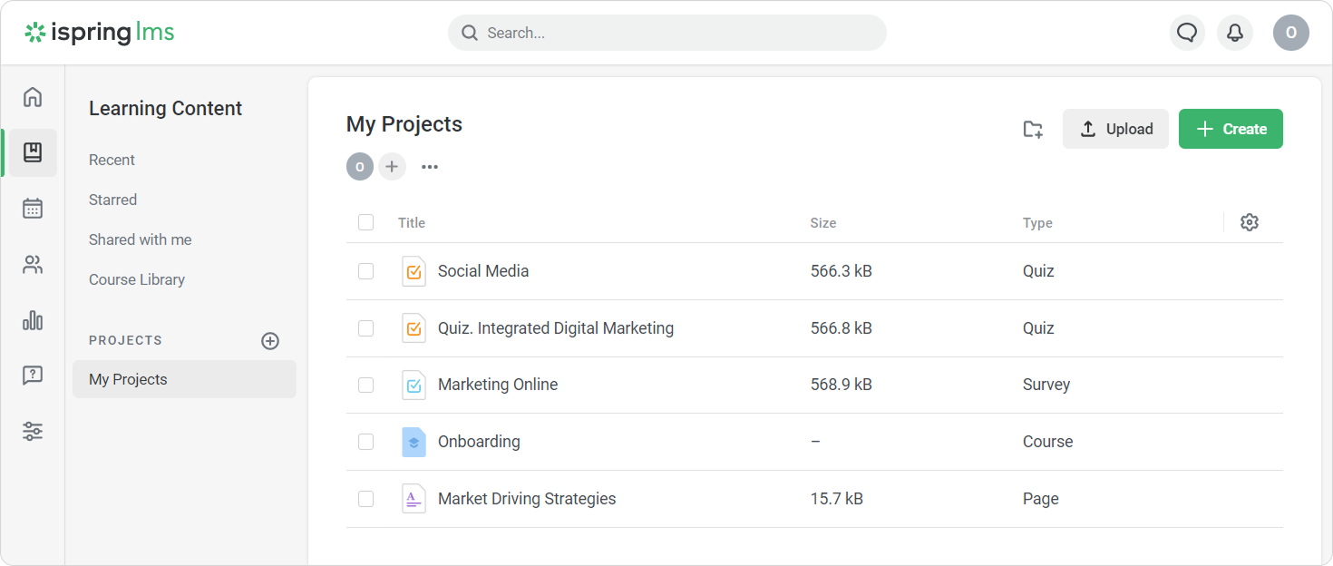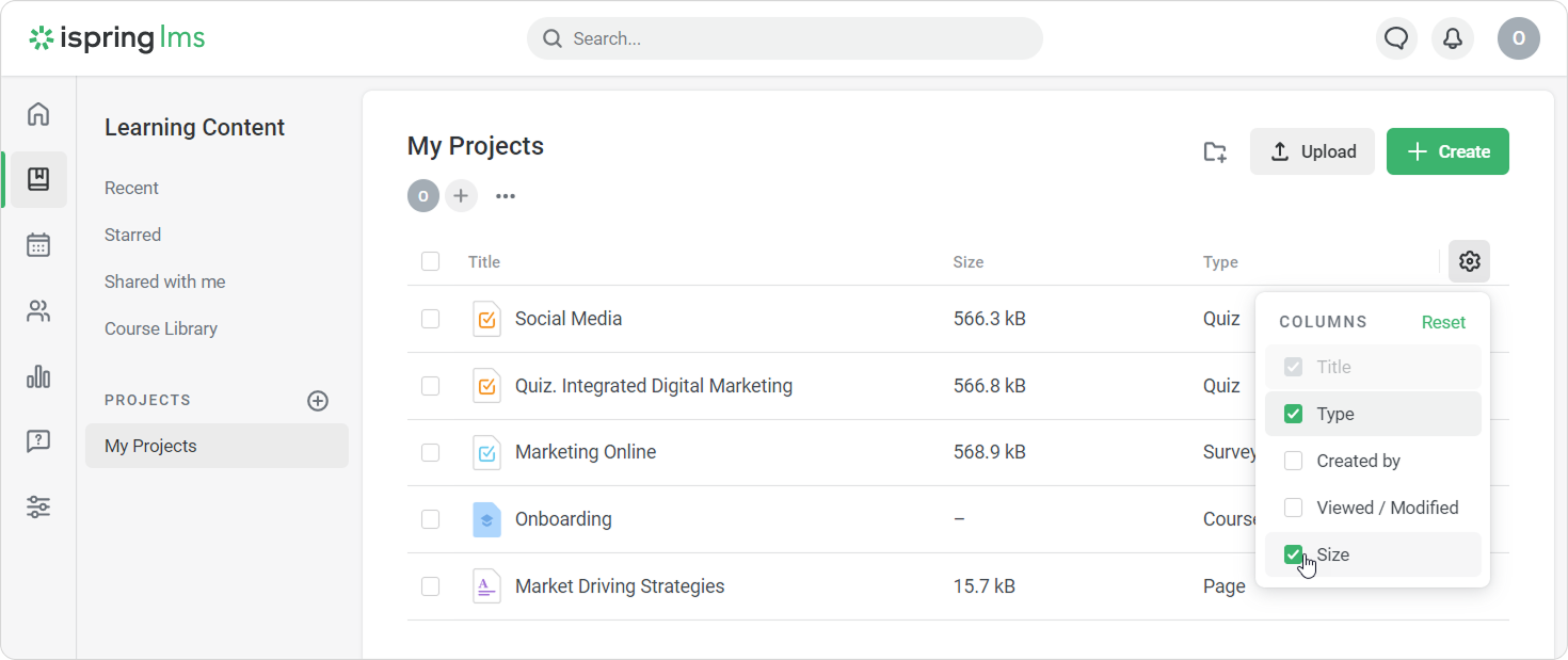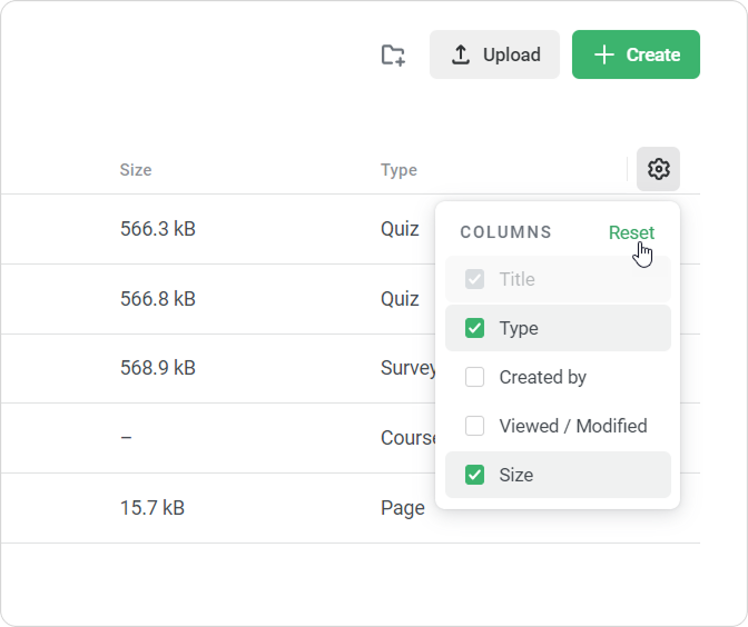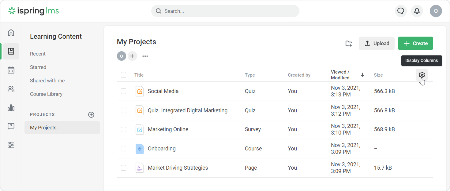 You can customize what information to show on the screen in the Learning Content section. Leave only the necessary columns and disable those that are not needed. This will make it easier to navigate the list of content.