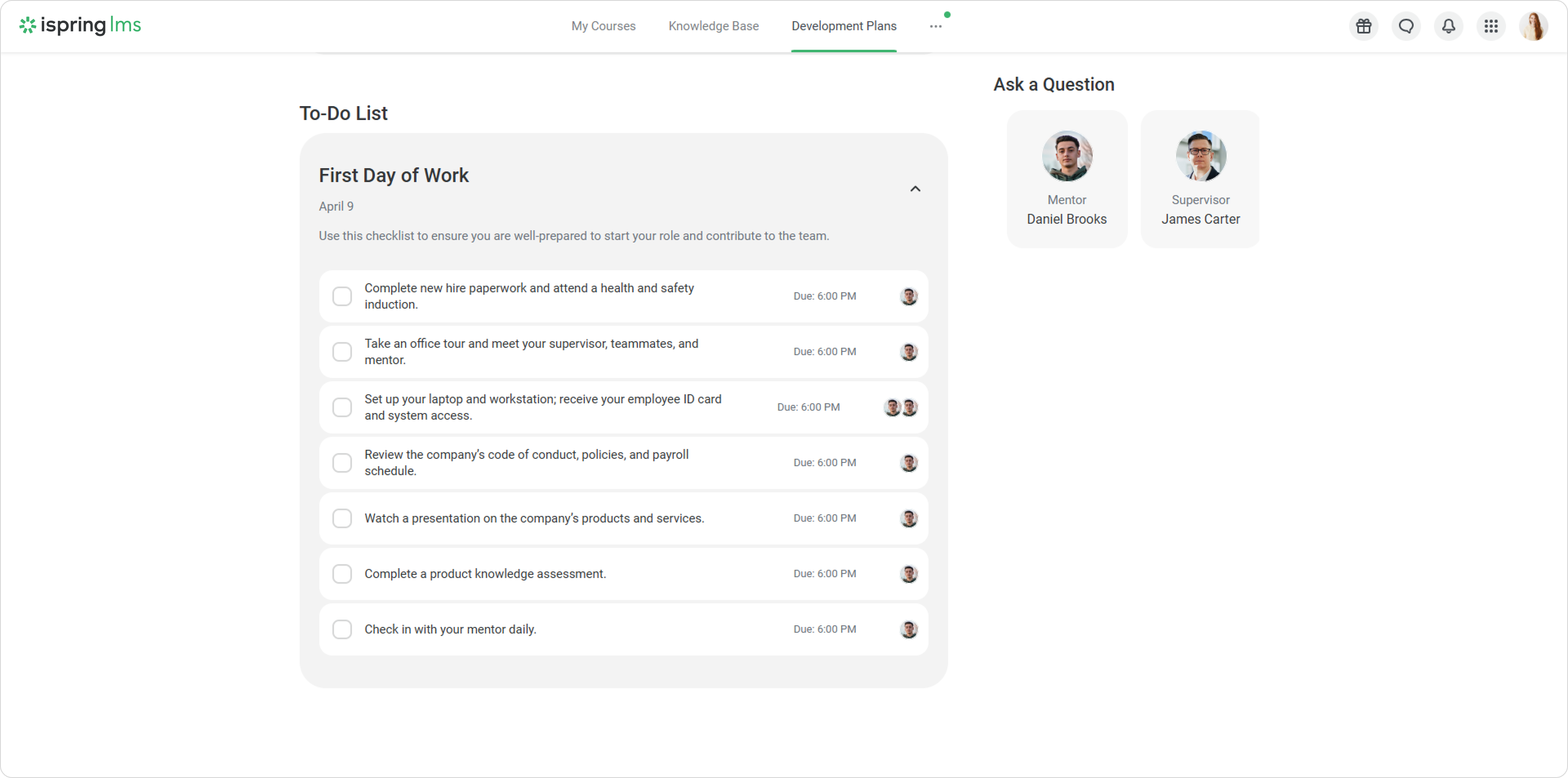 Let's look at how an employee will go through an onboarding plan, step by step.