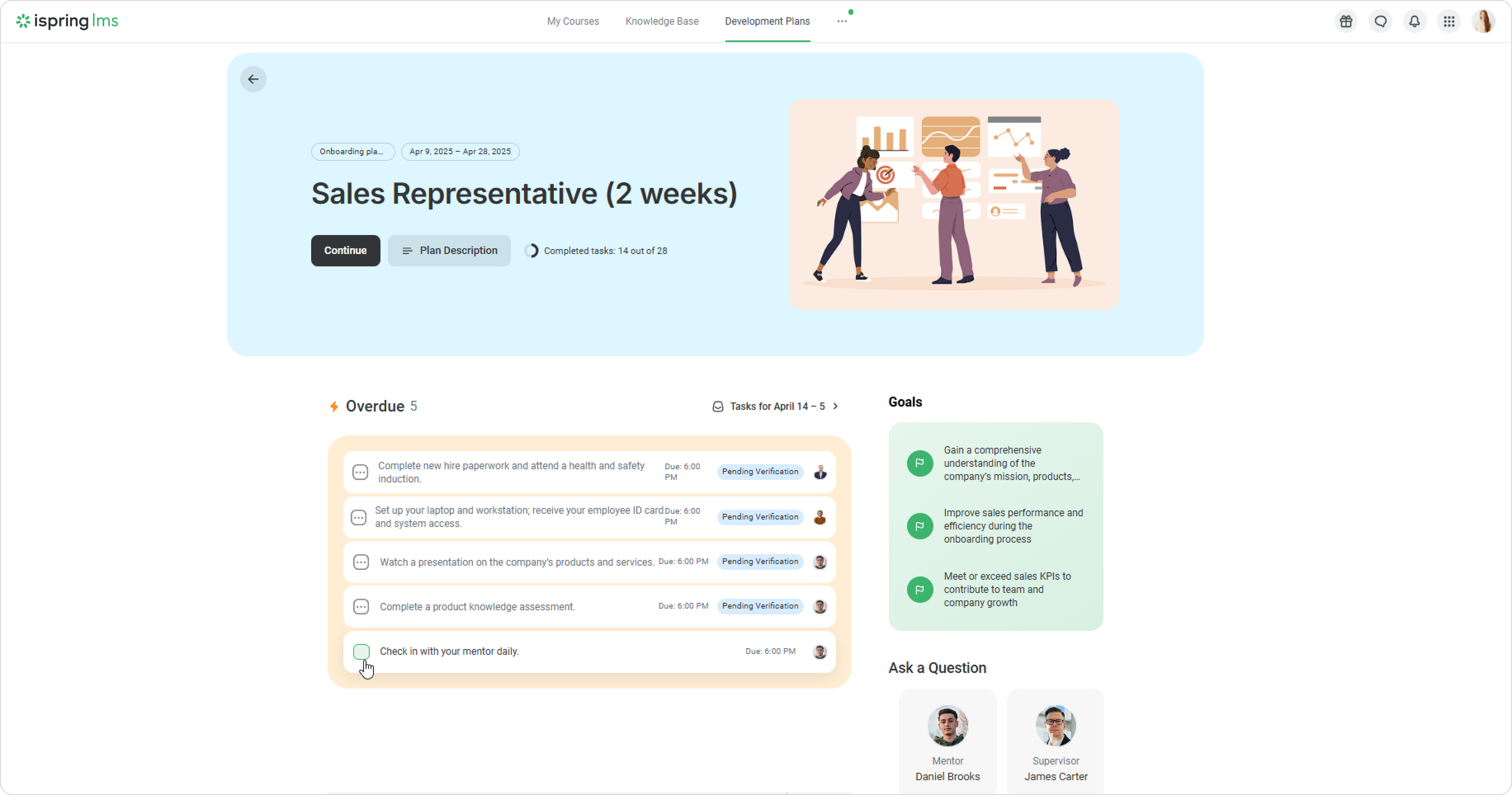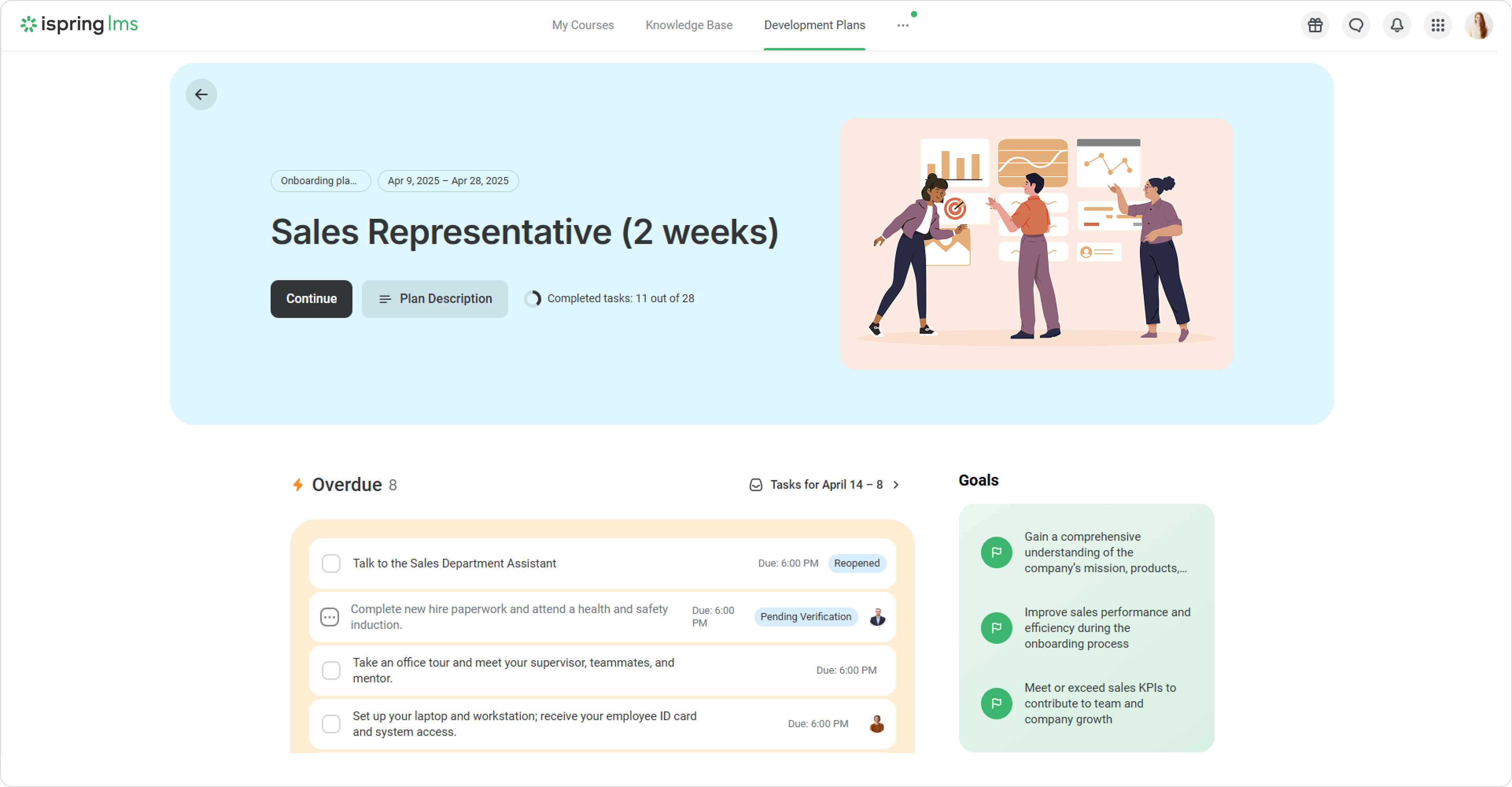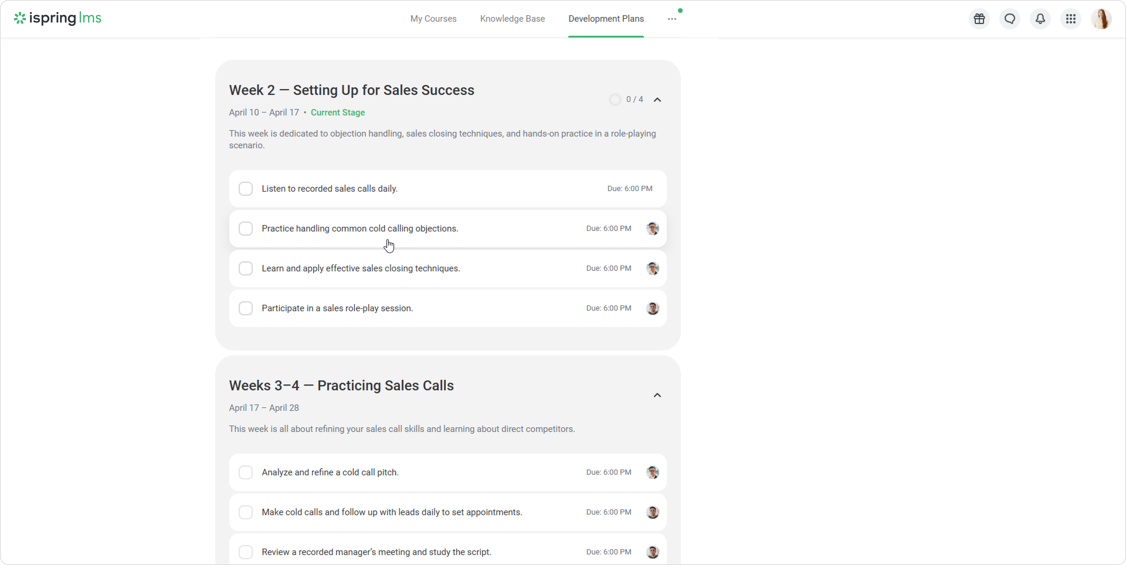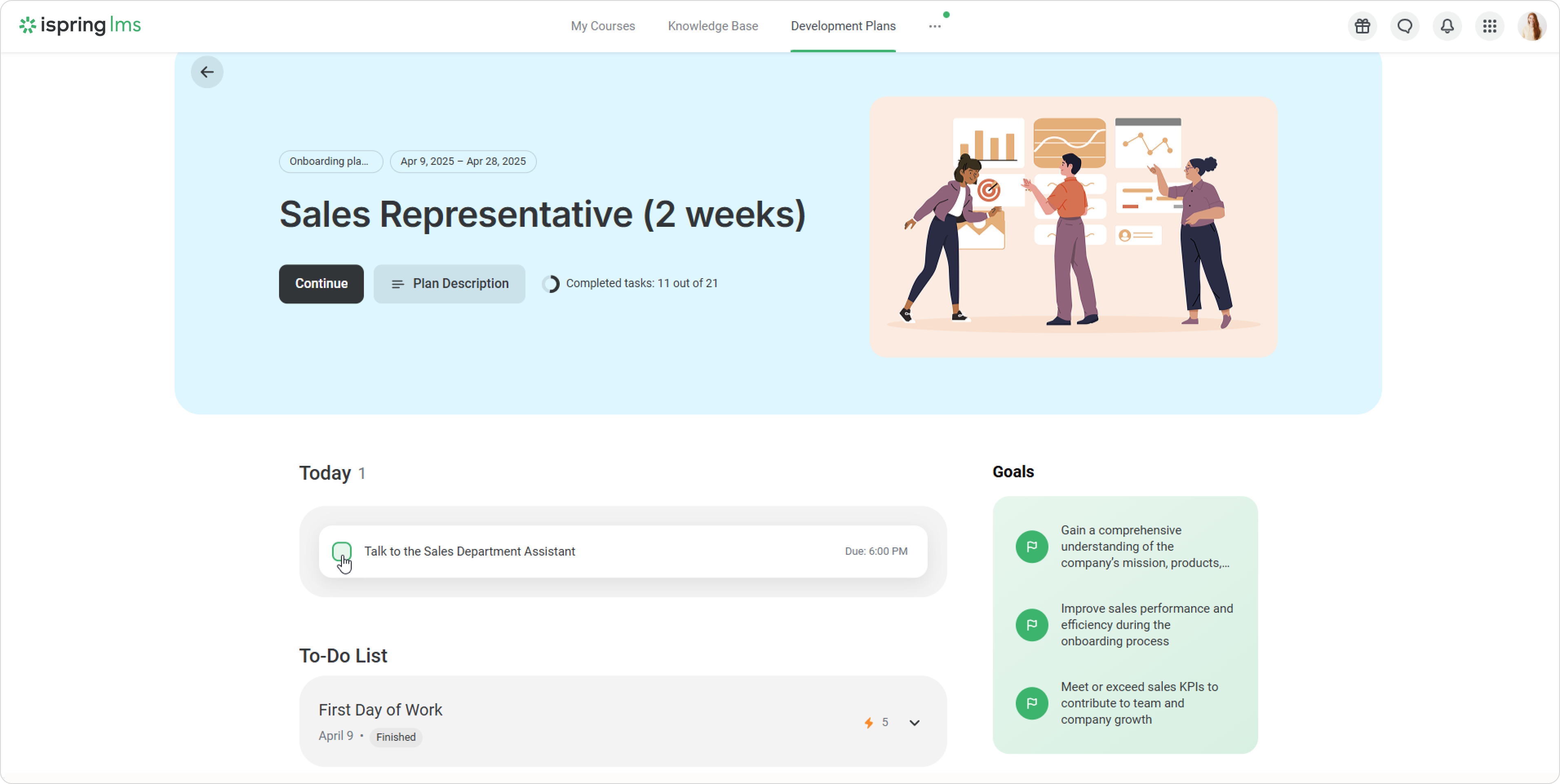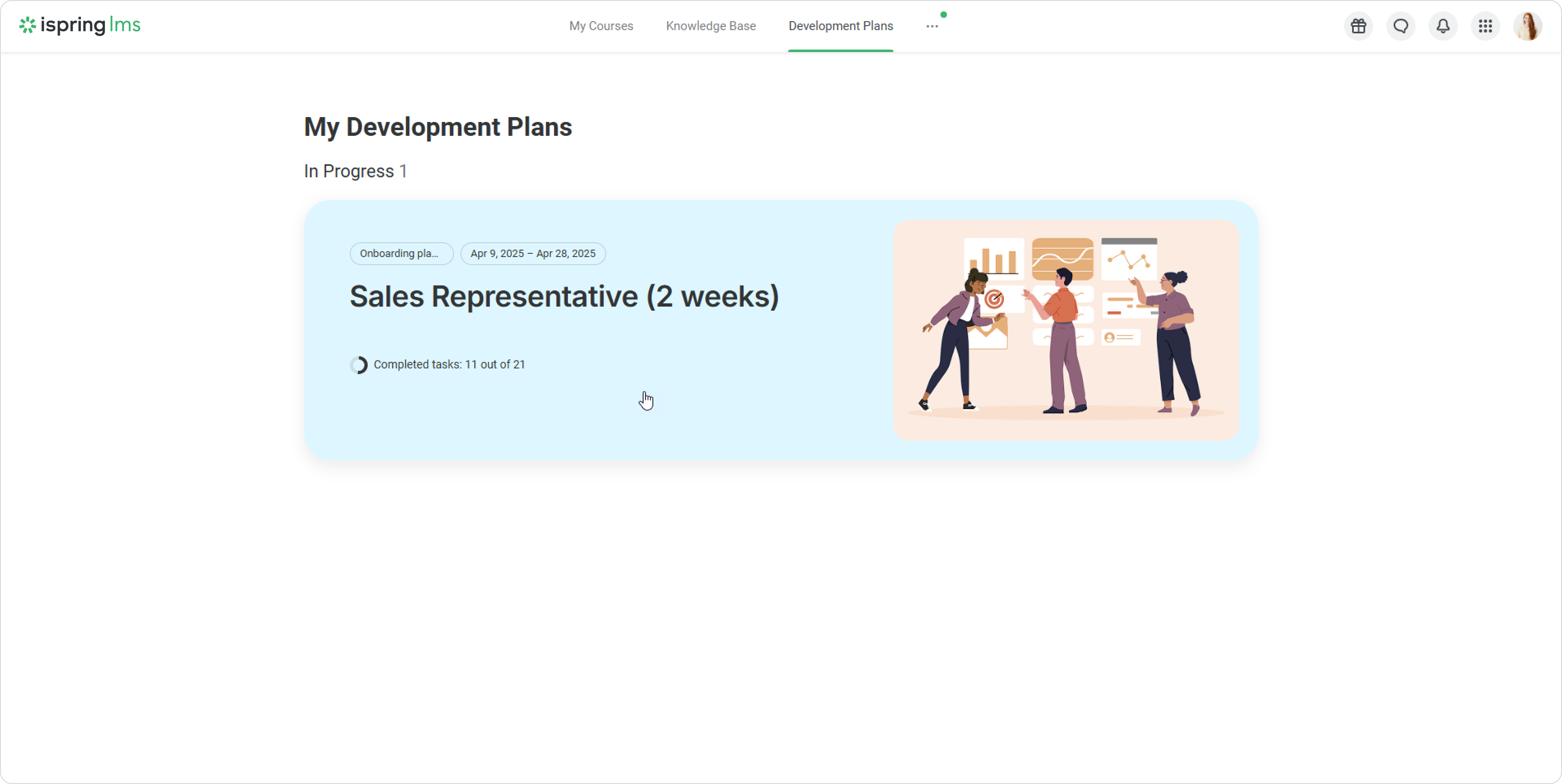 At any time, while progressing through the plan, you can open Development Plans > My Plans section, where all the plans assigned to you are stored.