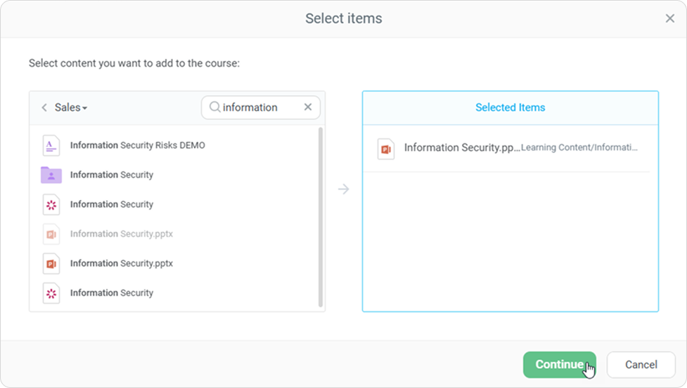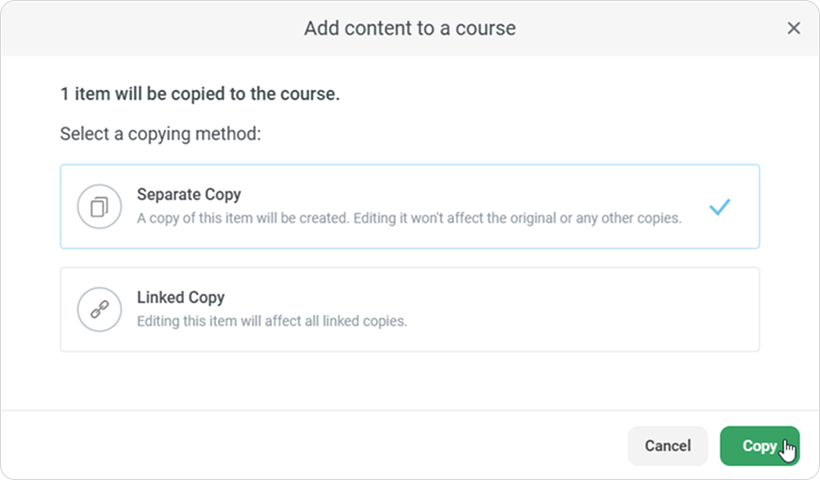 Access to the content item added to a course from another project depends on whether you have access to the project where the content item is stored.
