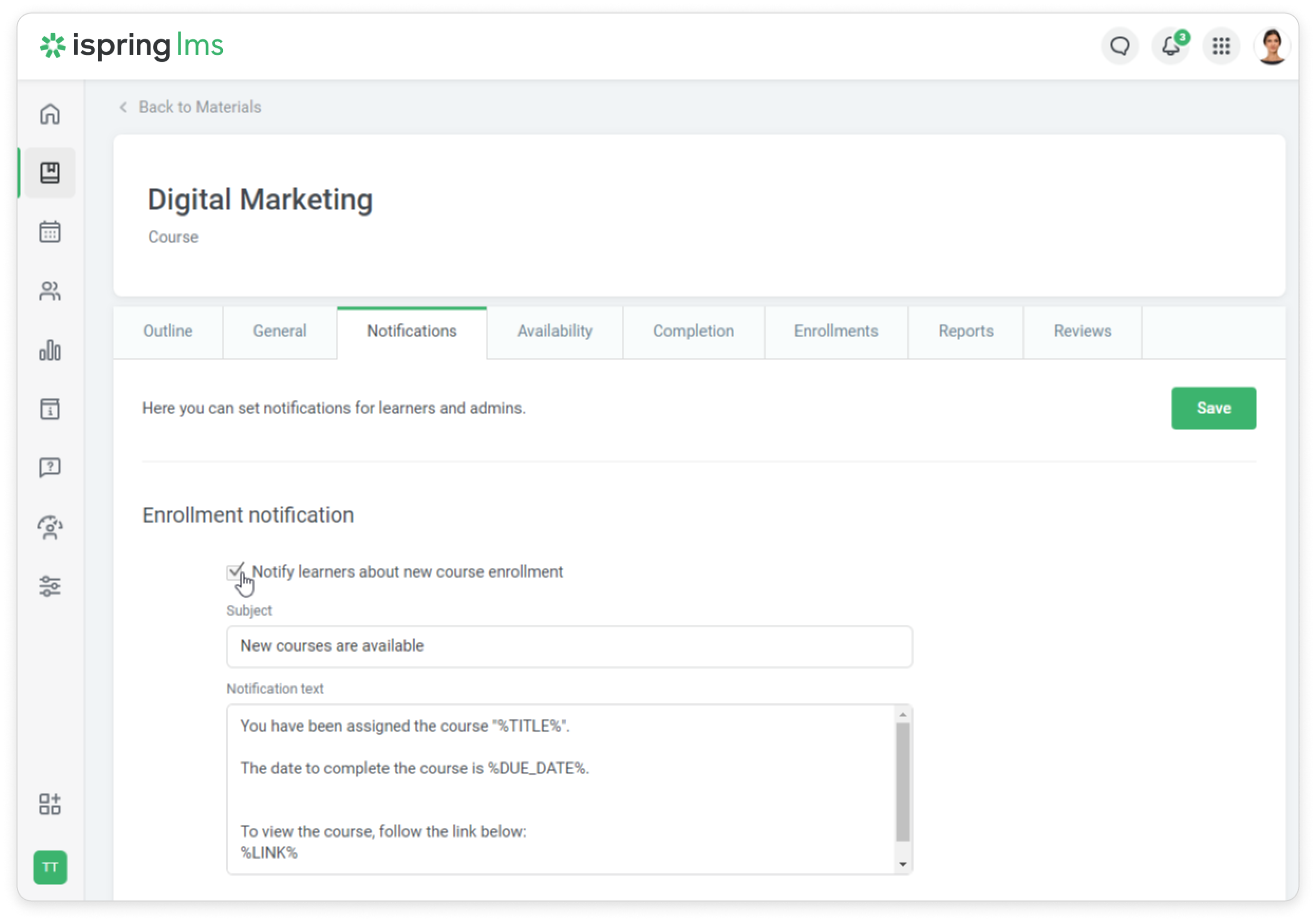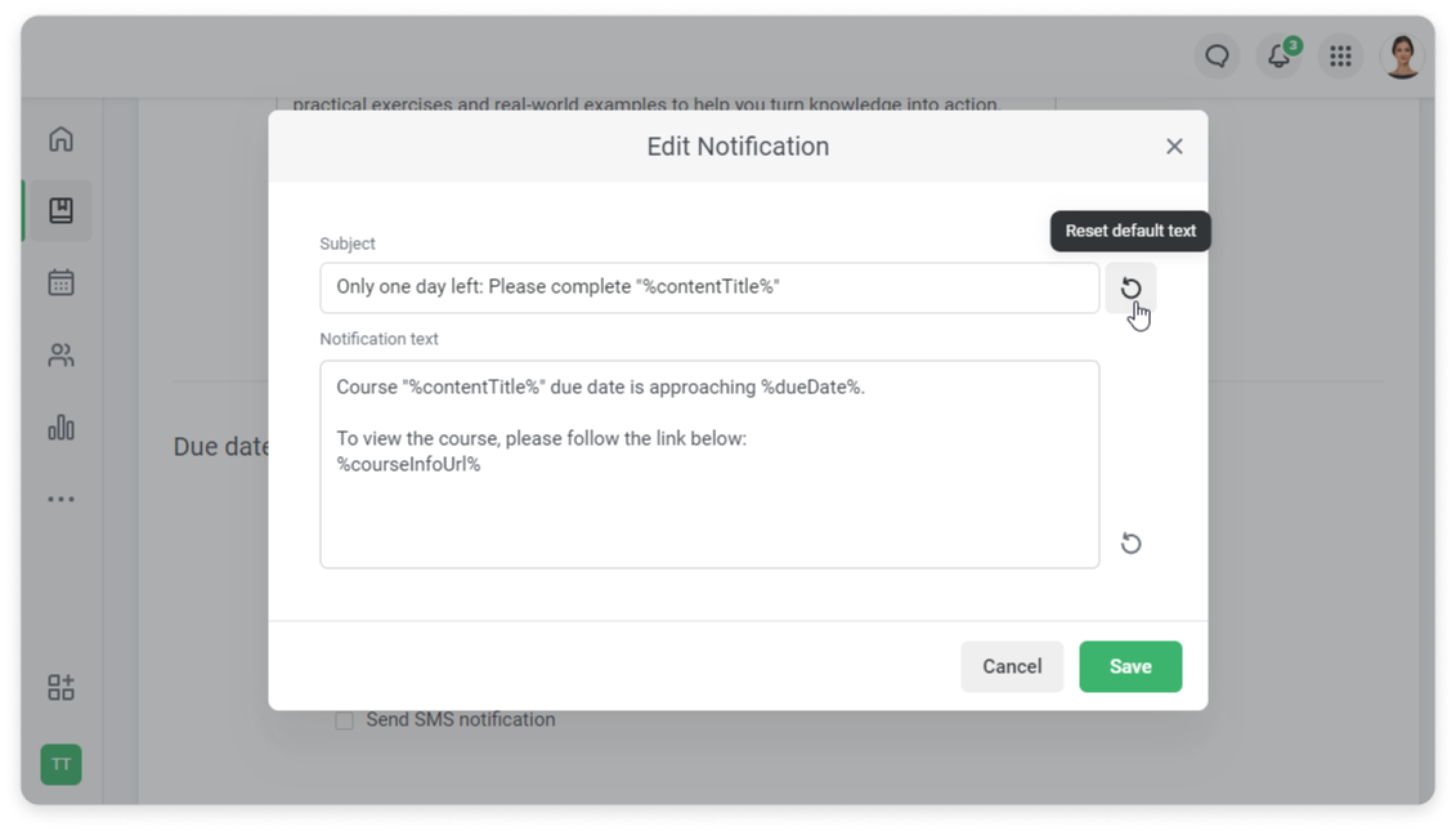 Send your Learners several automatic reminders when the completion date of the course is approaching.