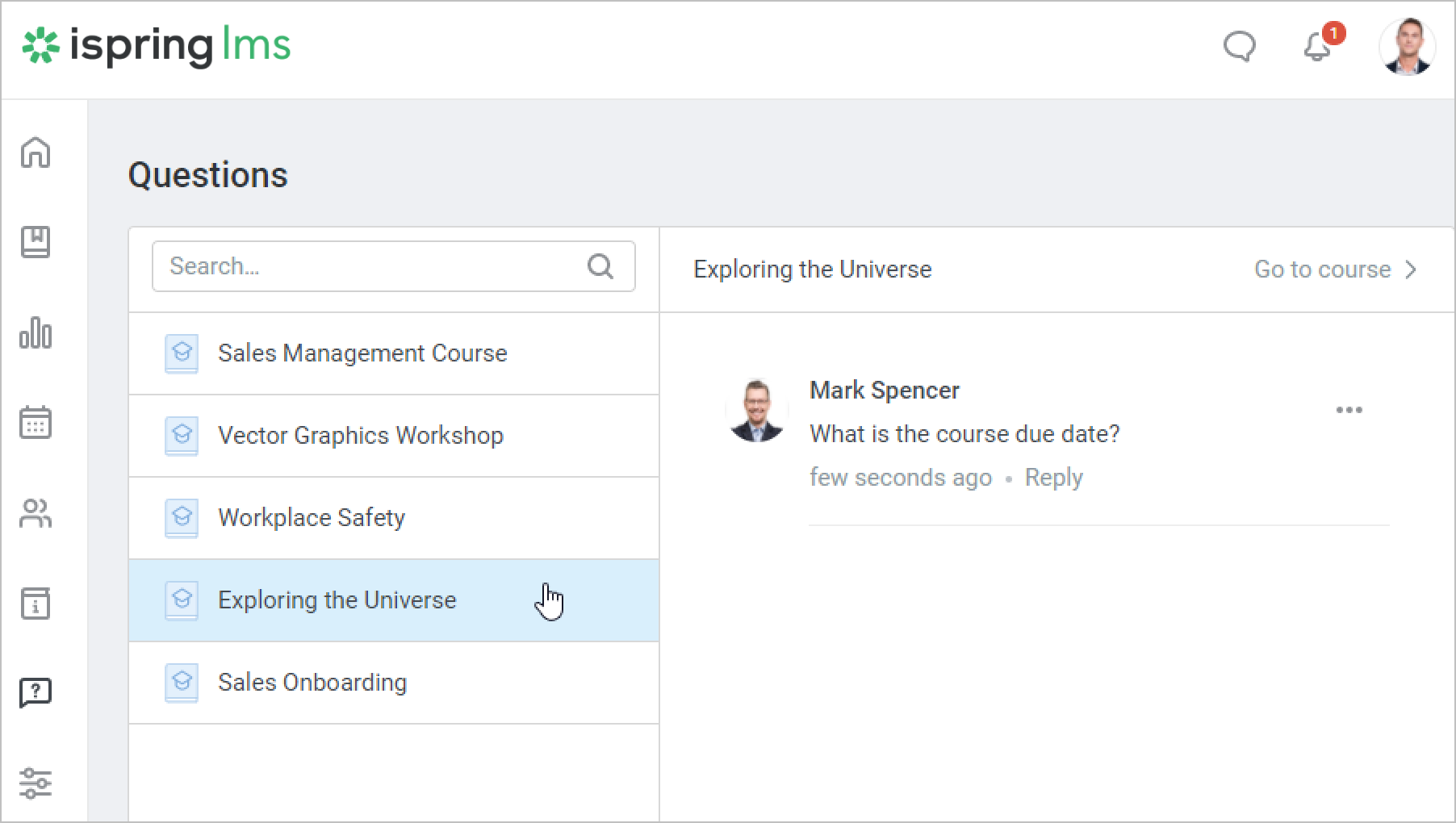 - If there is an instructor assigned to the course, they will receive a notification about a question asked through the Questions and Responses tab.