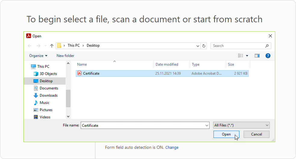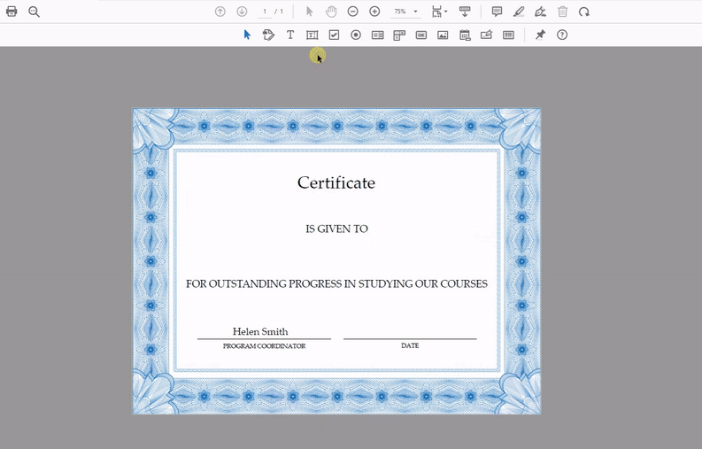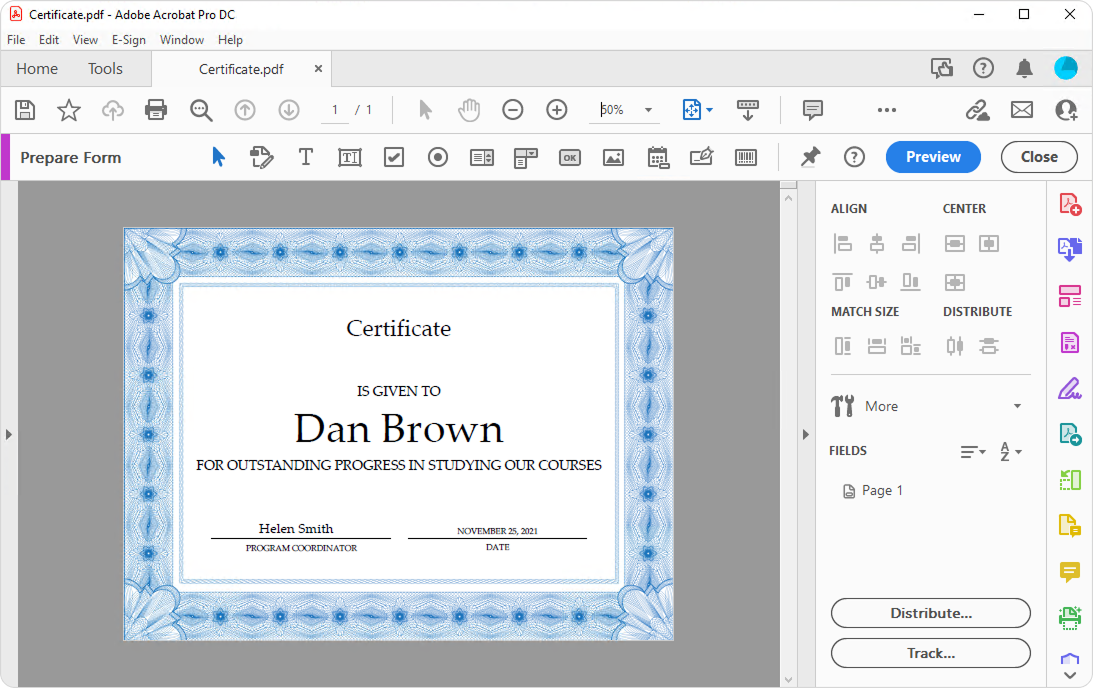 To add form fields to your PDF certificate, please install Adobe Acrobat DC, which allows you to edit PDF files.