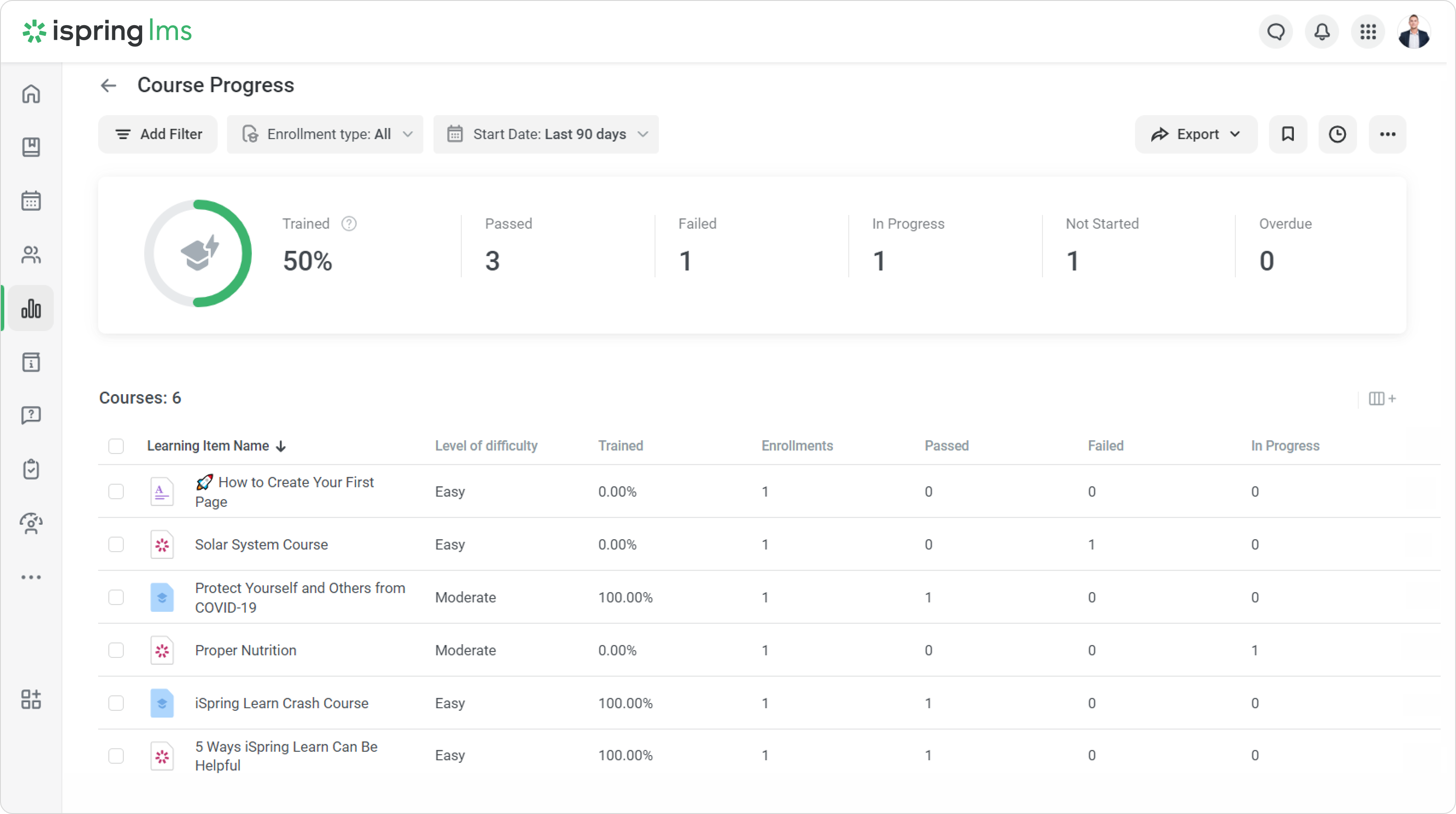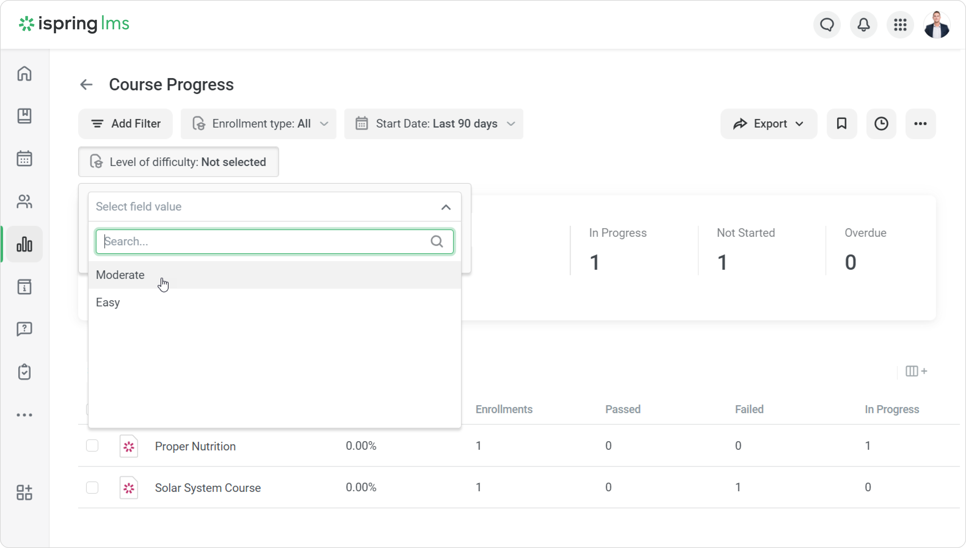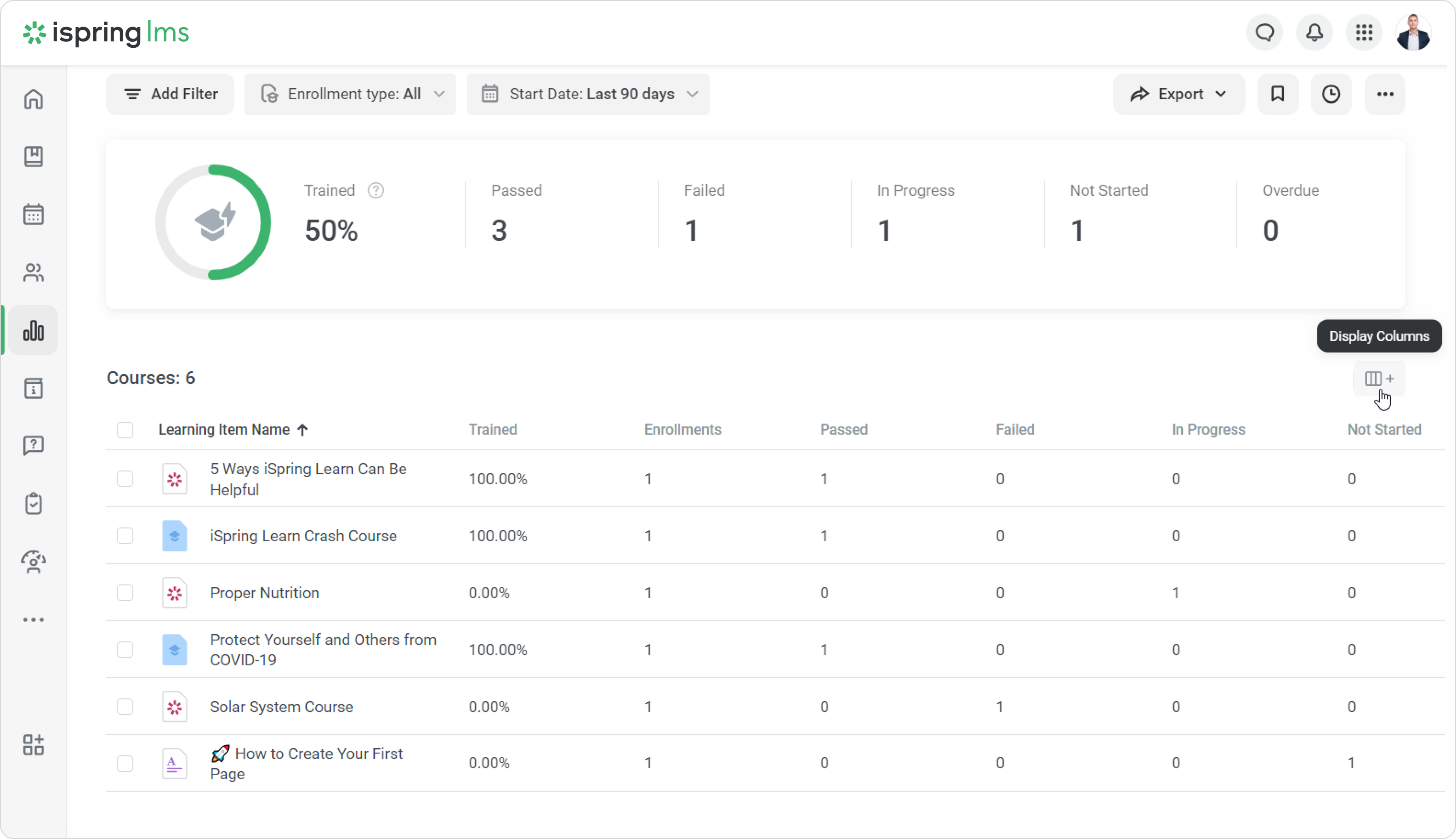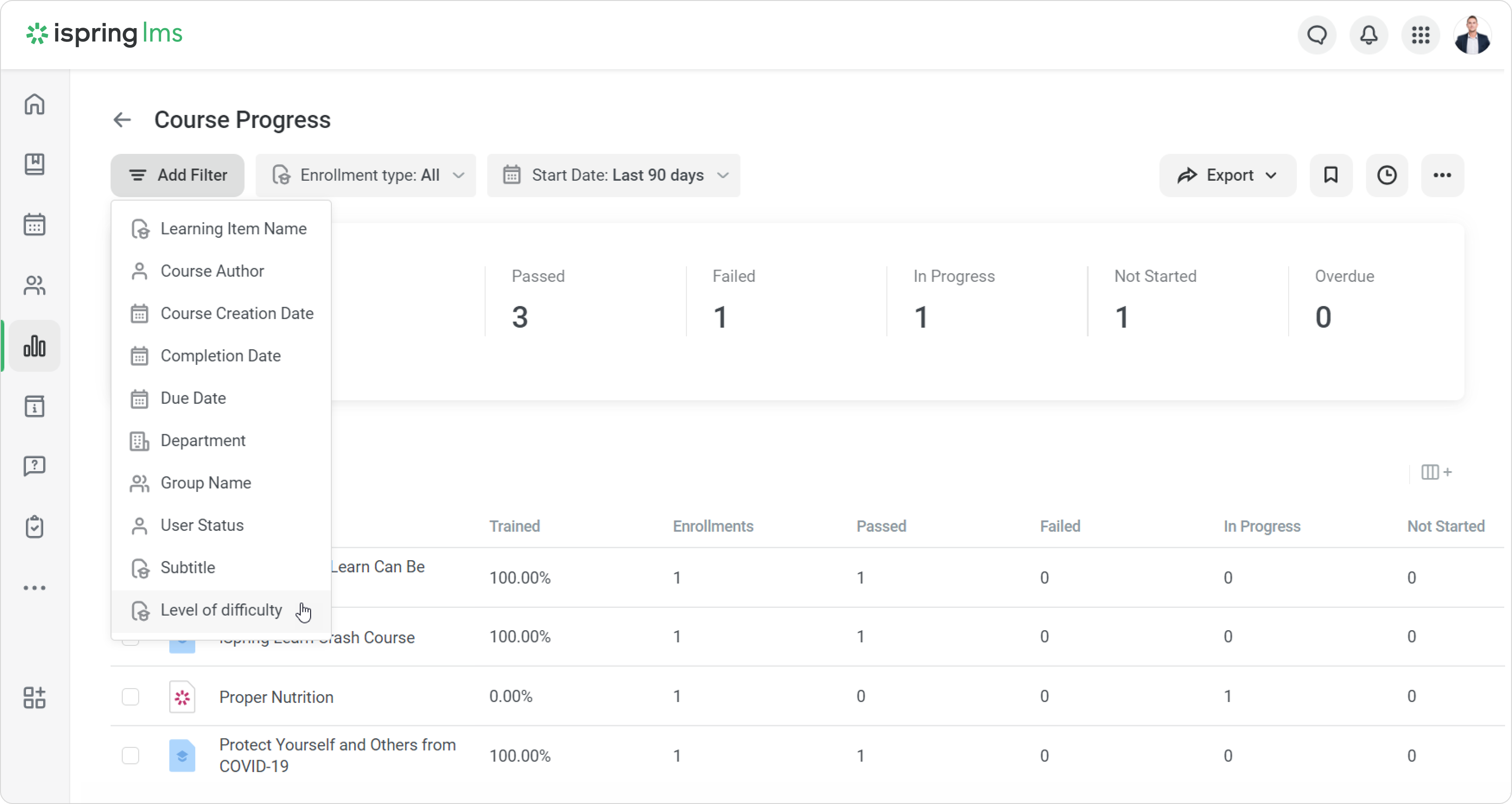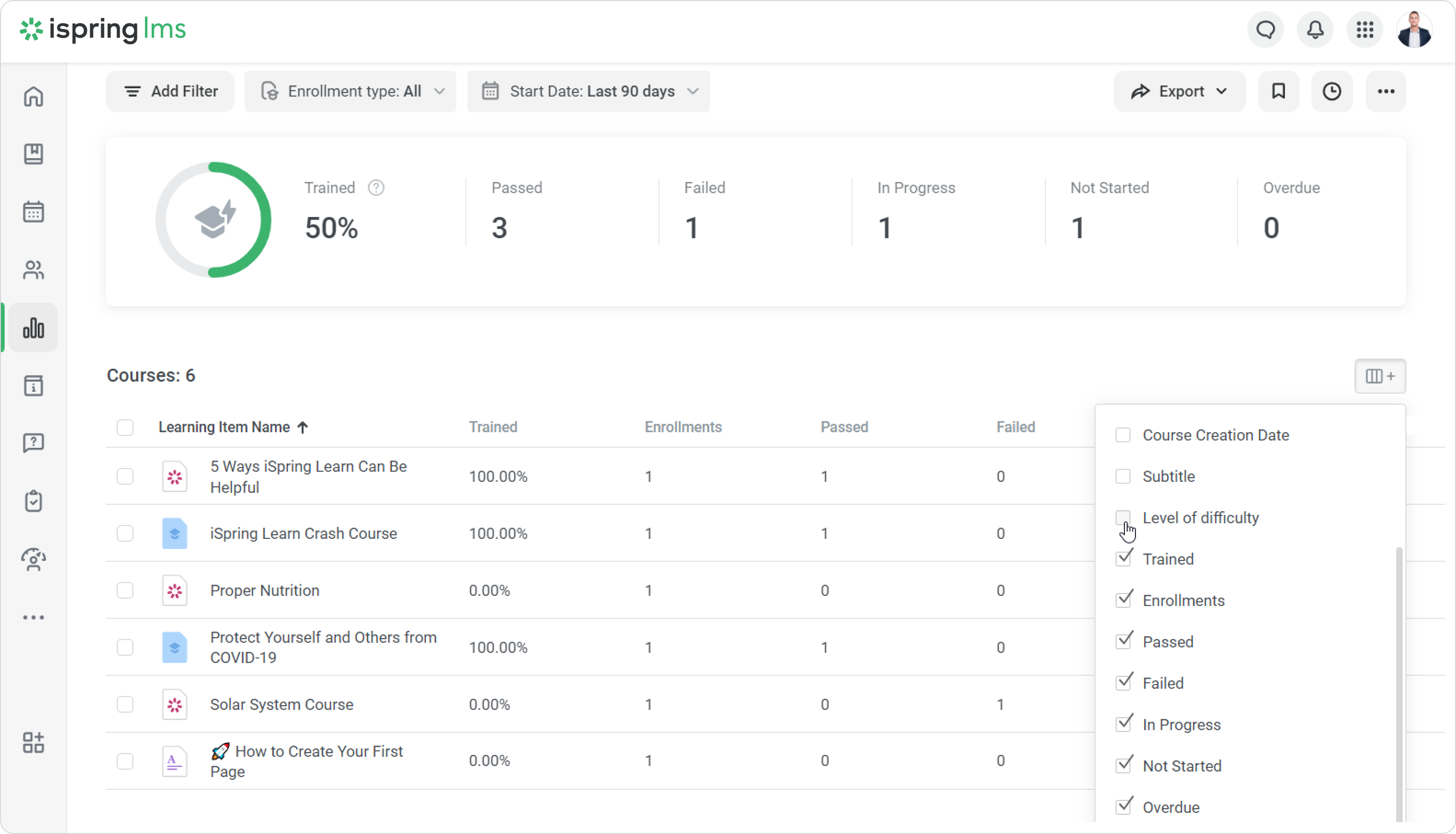Create custom course fields so that course properties include all the necessary information about training. Custom course fields allow you to add the program name, training provider, difficulty level, and other details that will be displayed in reports and certificates.