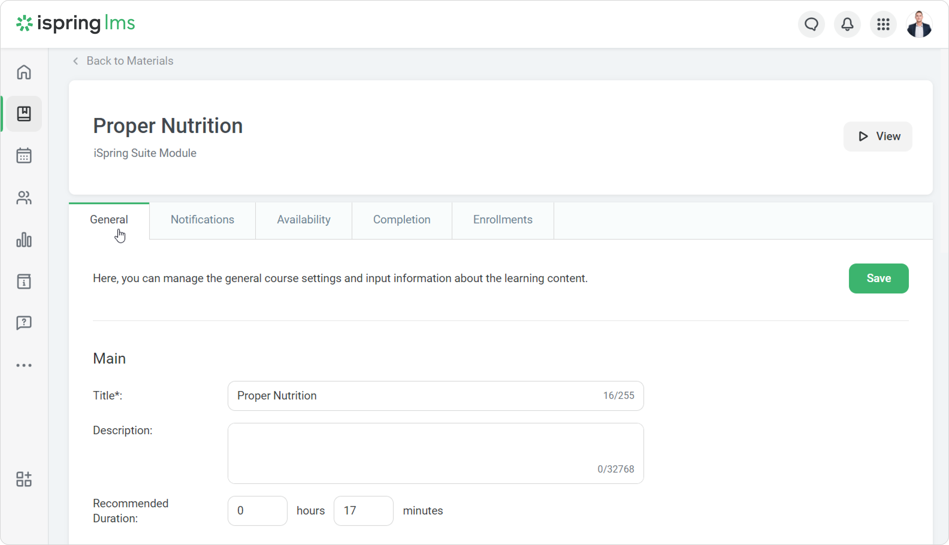 Open the course and go to the Generaltab.
