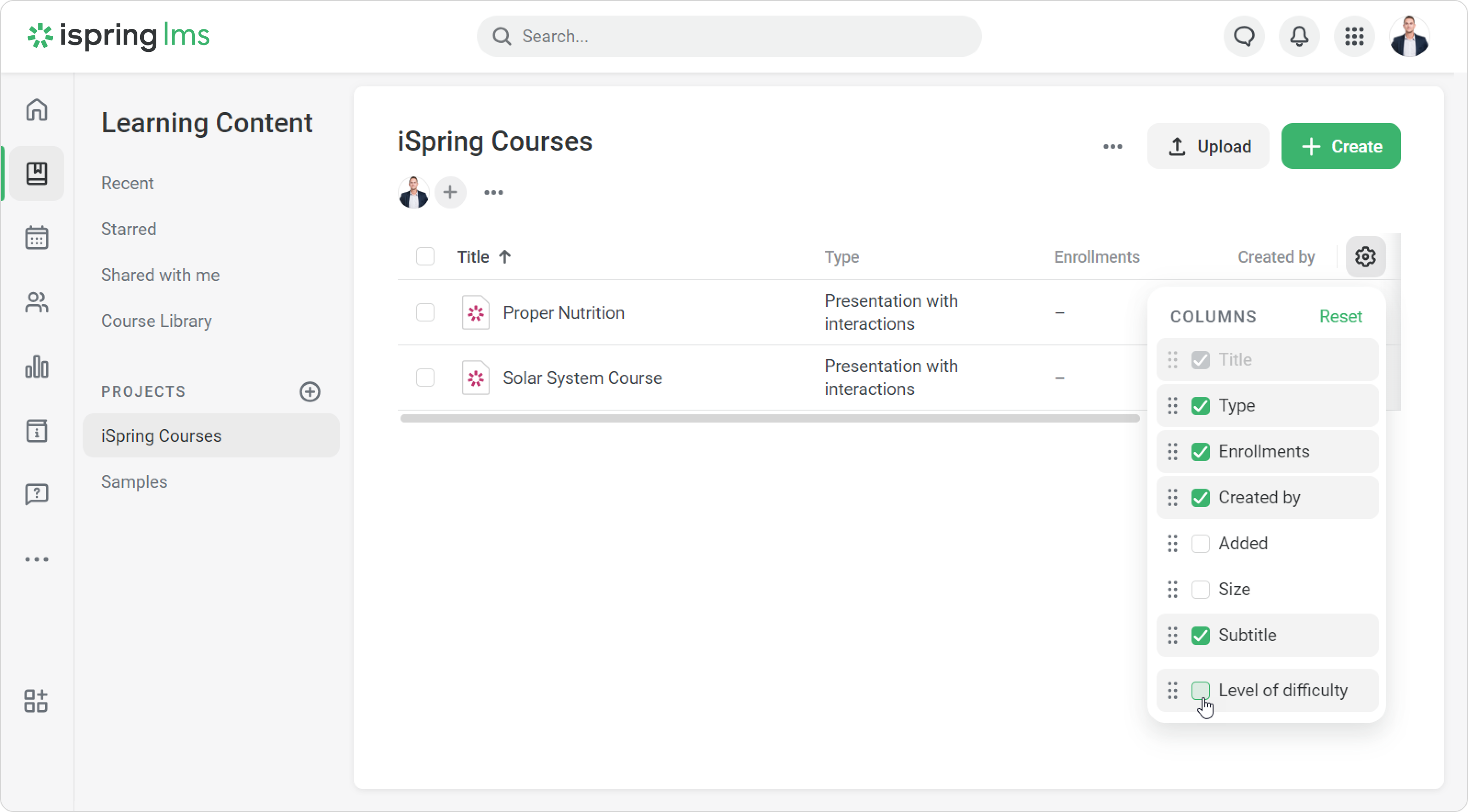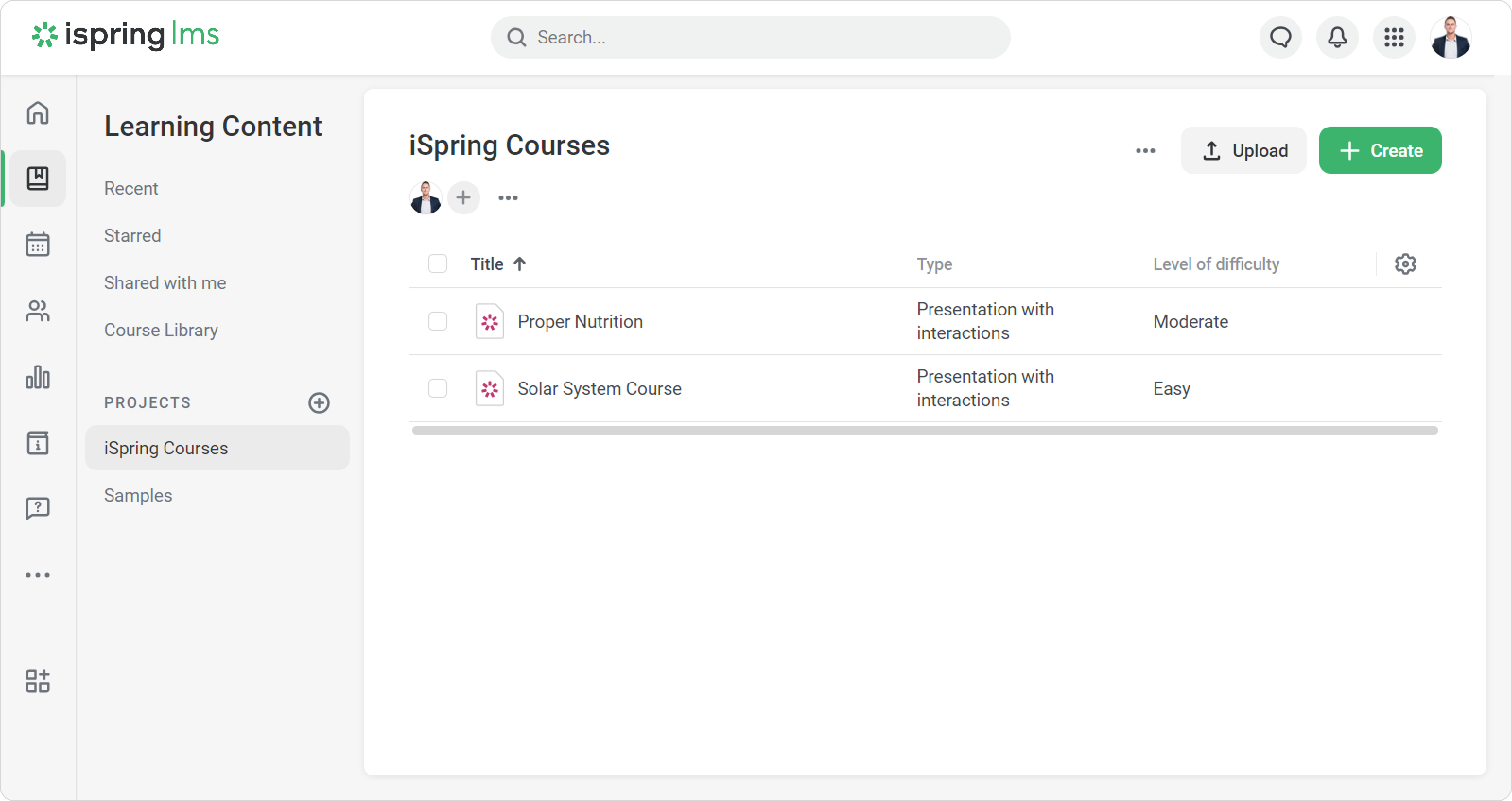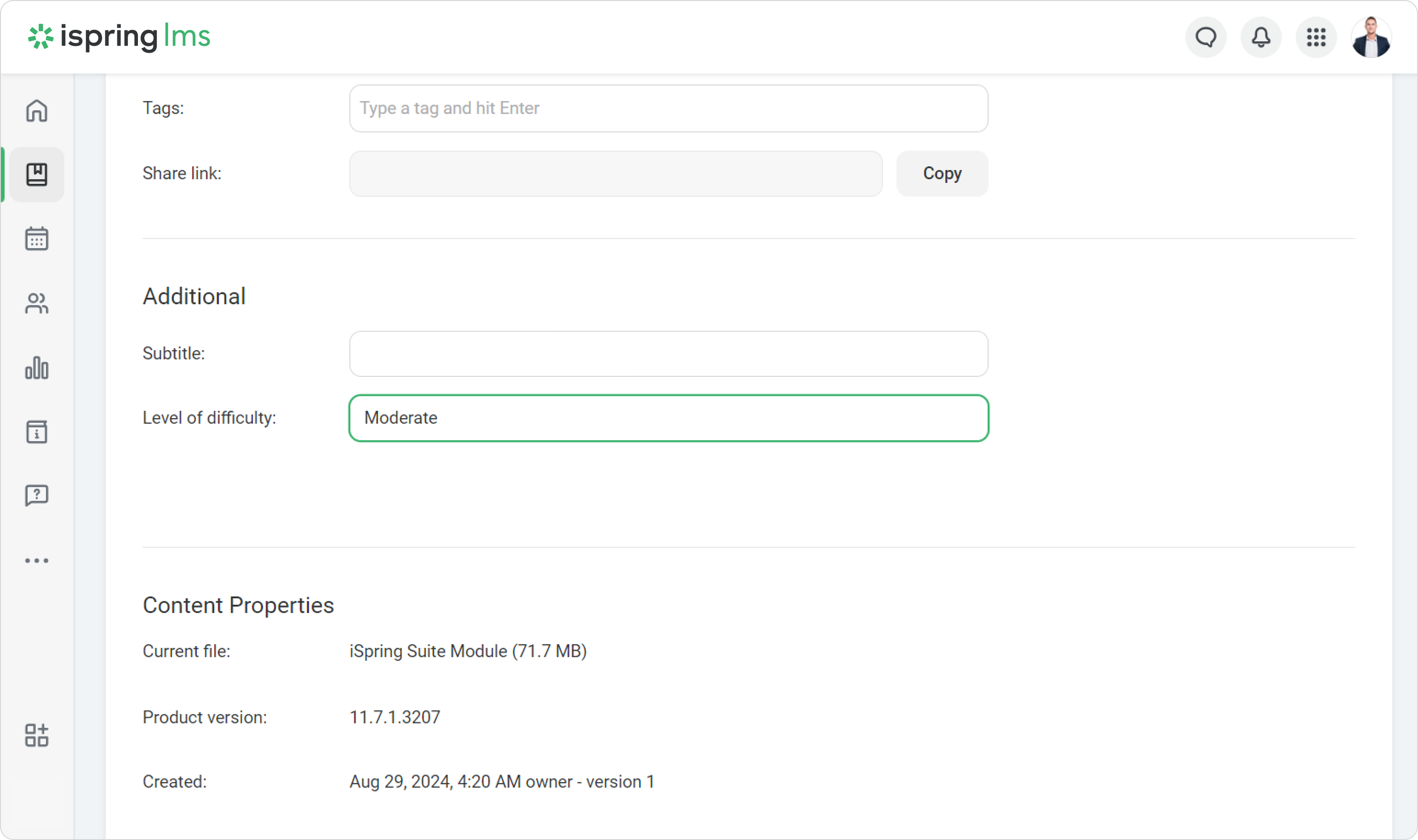 Done! You can see the needed information about learning content.