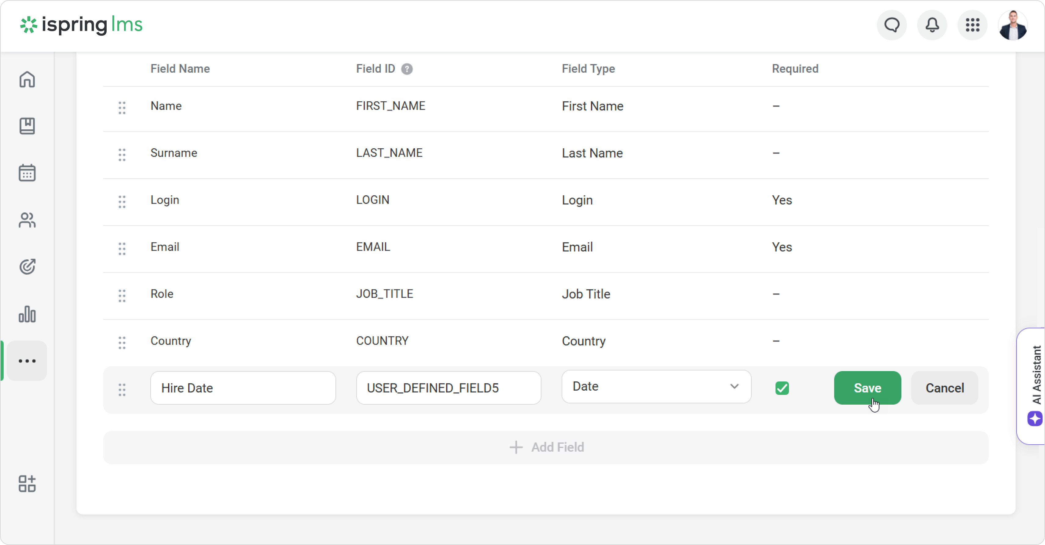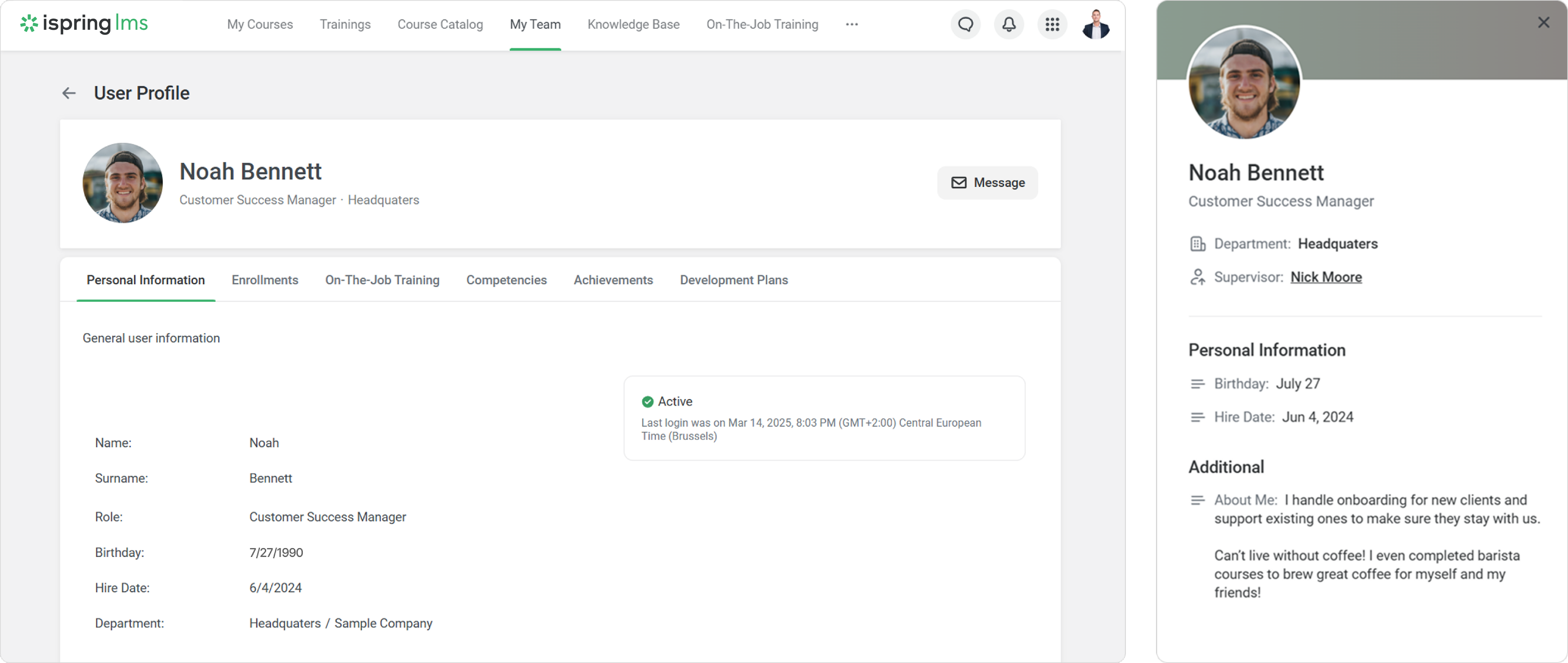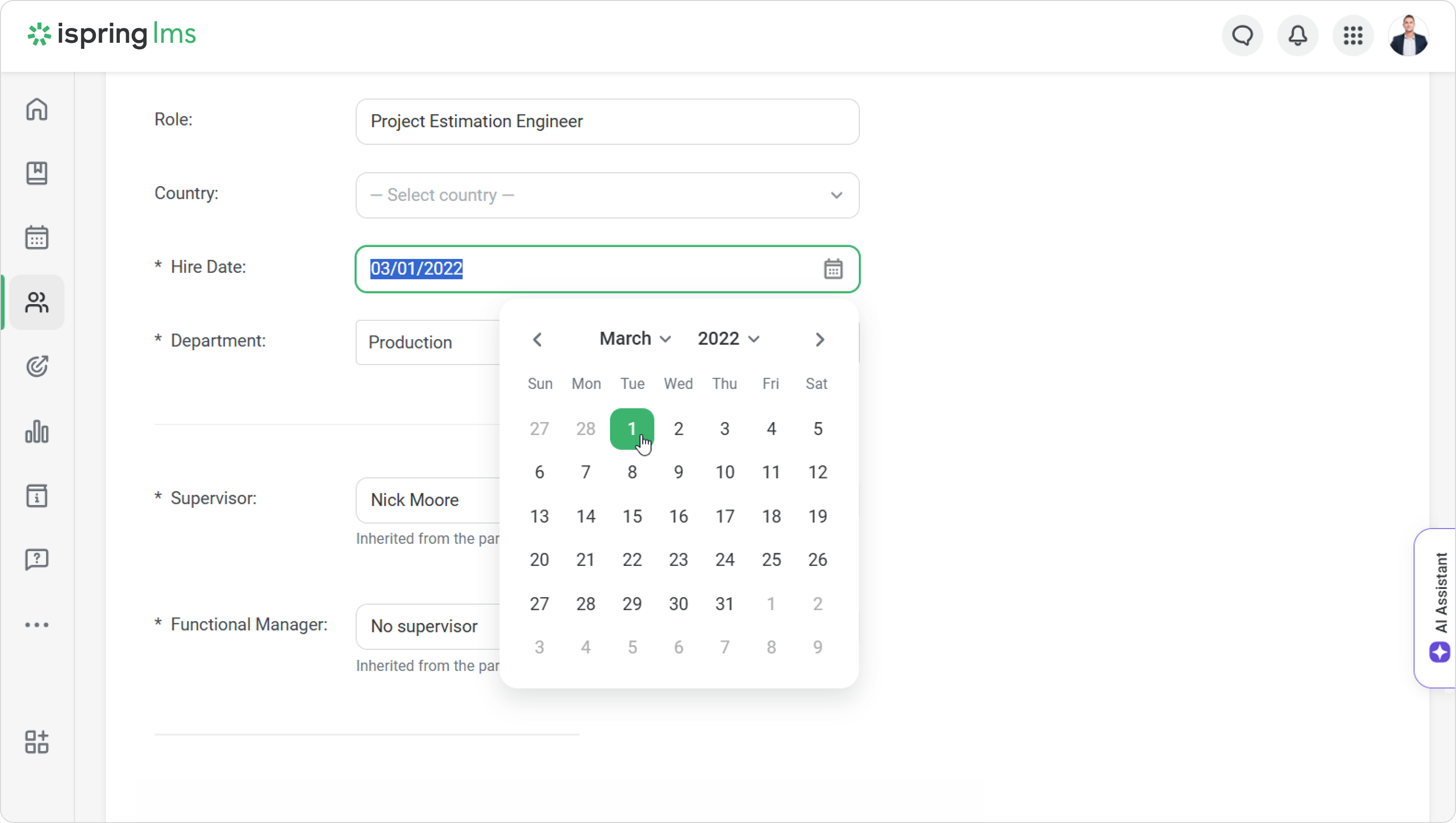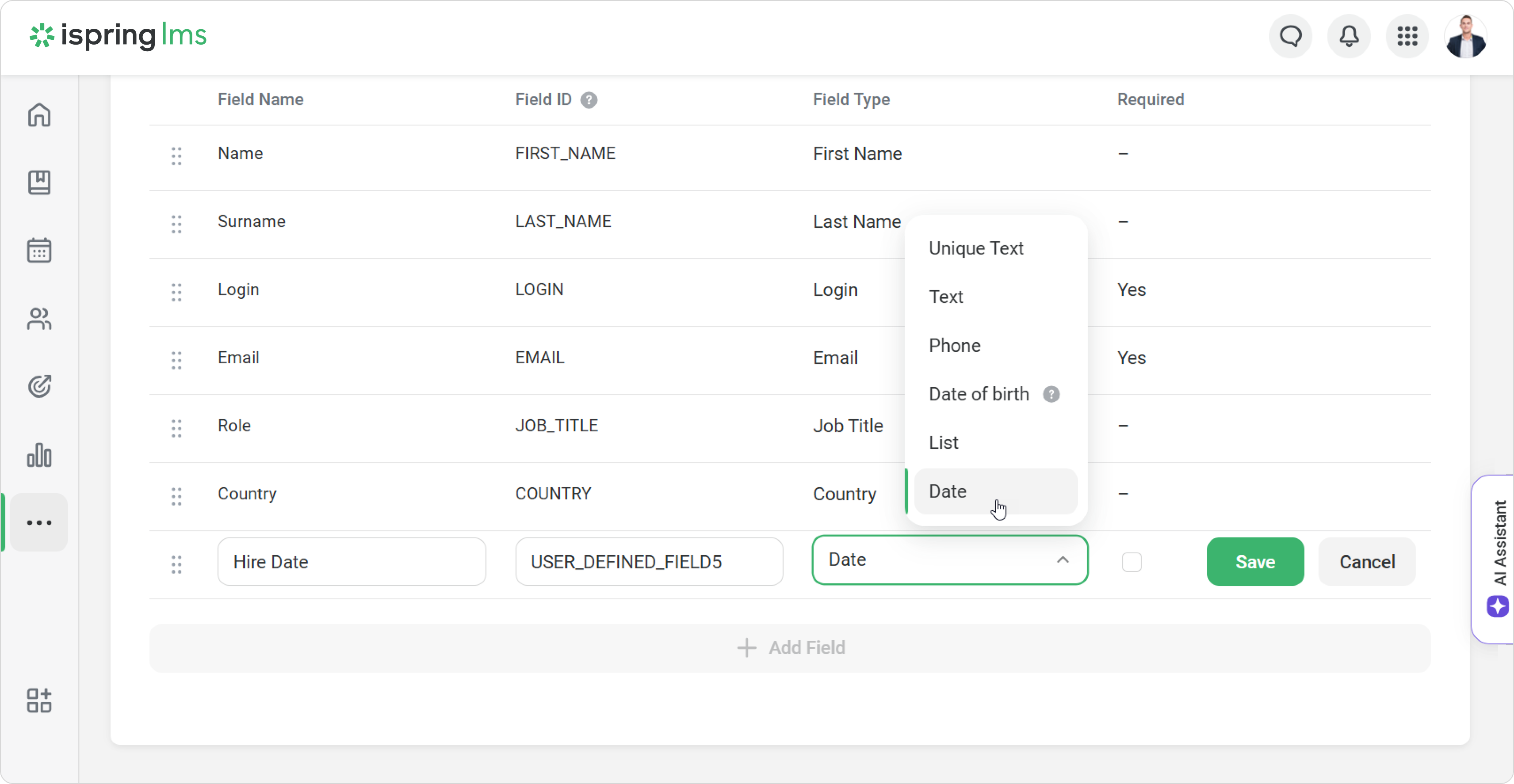 Administrators can use a date field to record key events in an employee’s timeline: hiring, end of probation, vacation, maternity leave, and more.