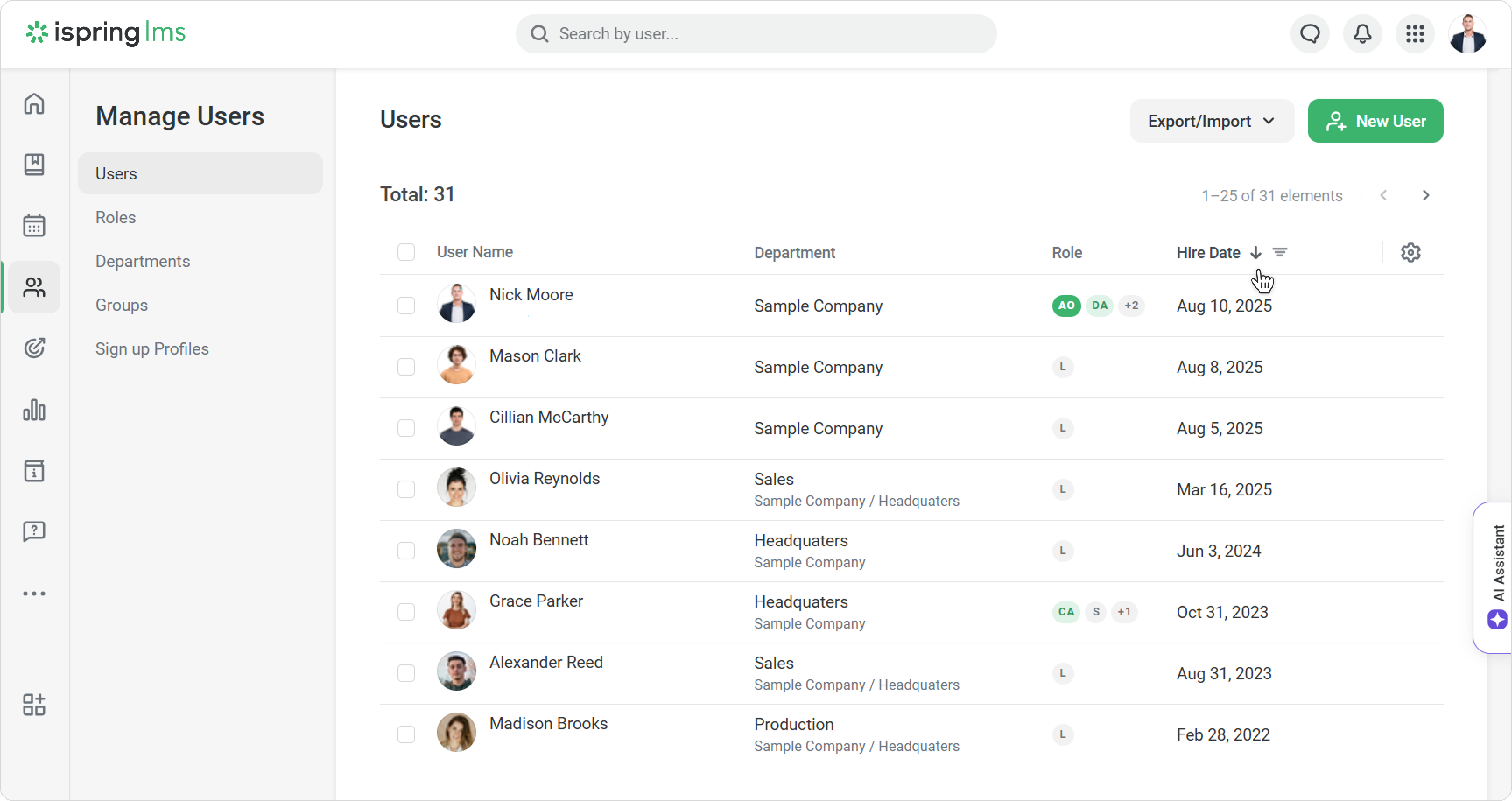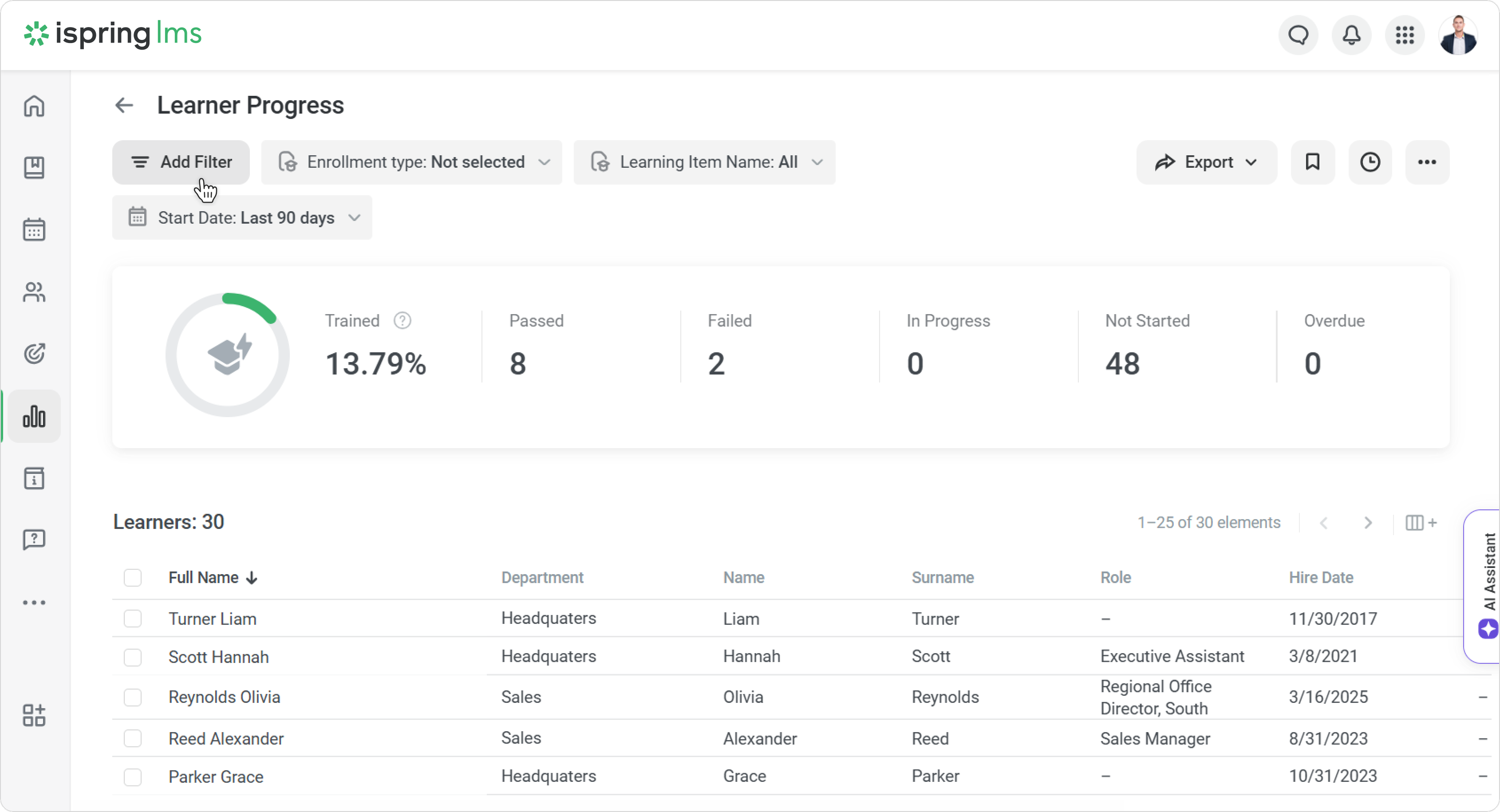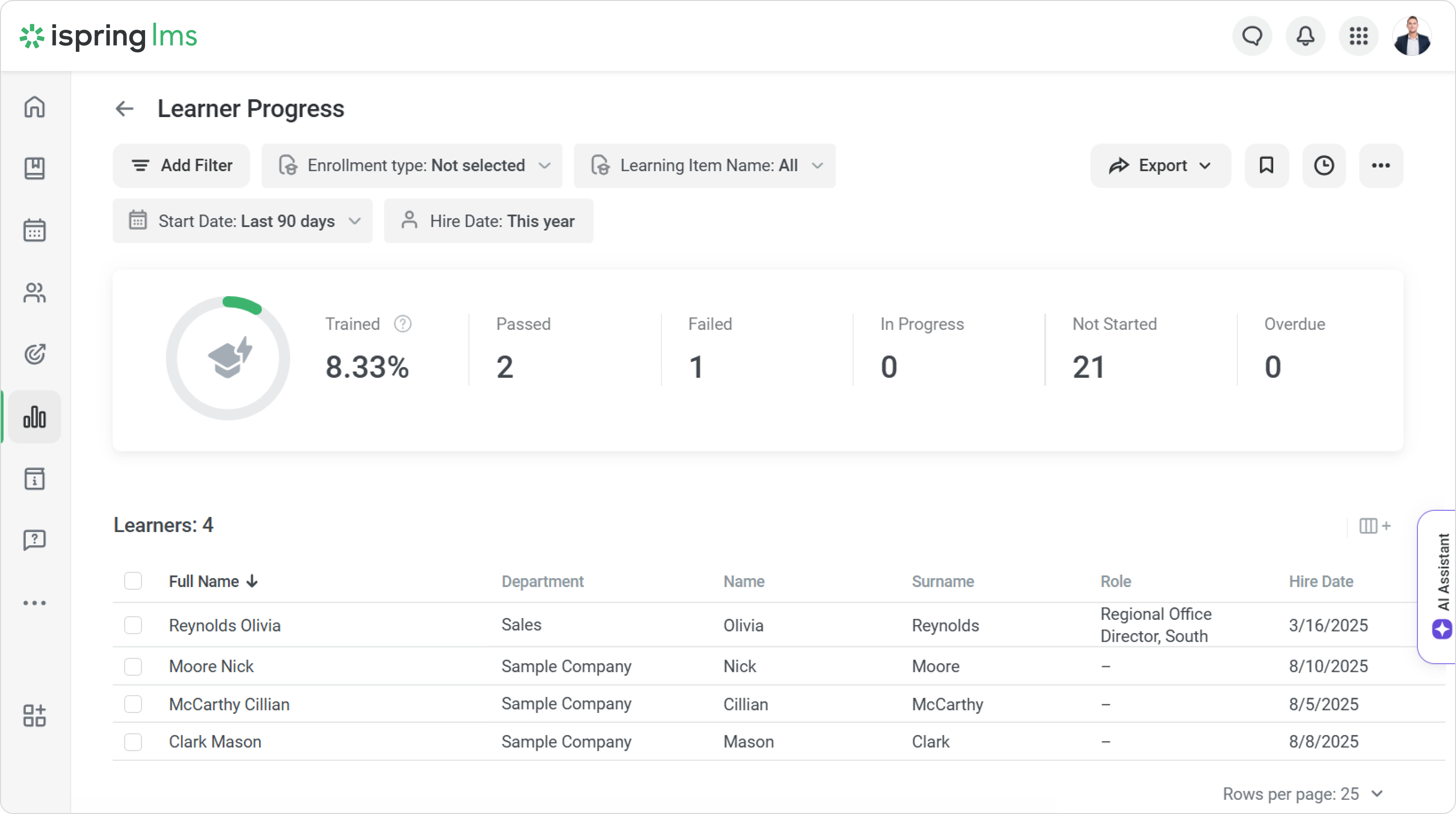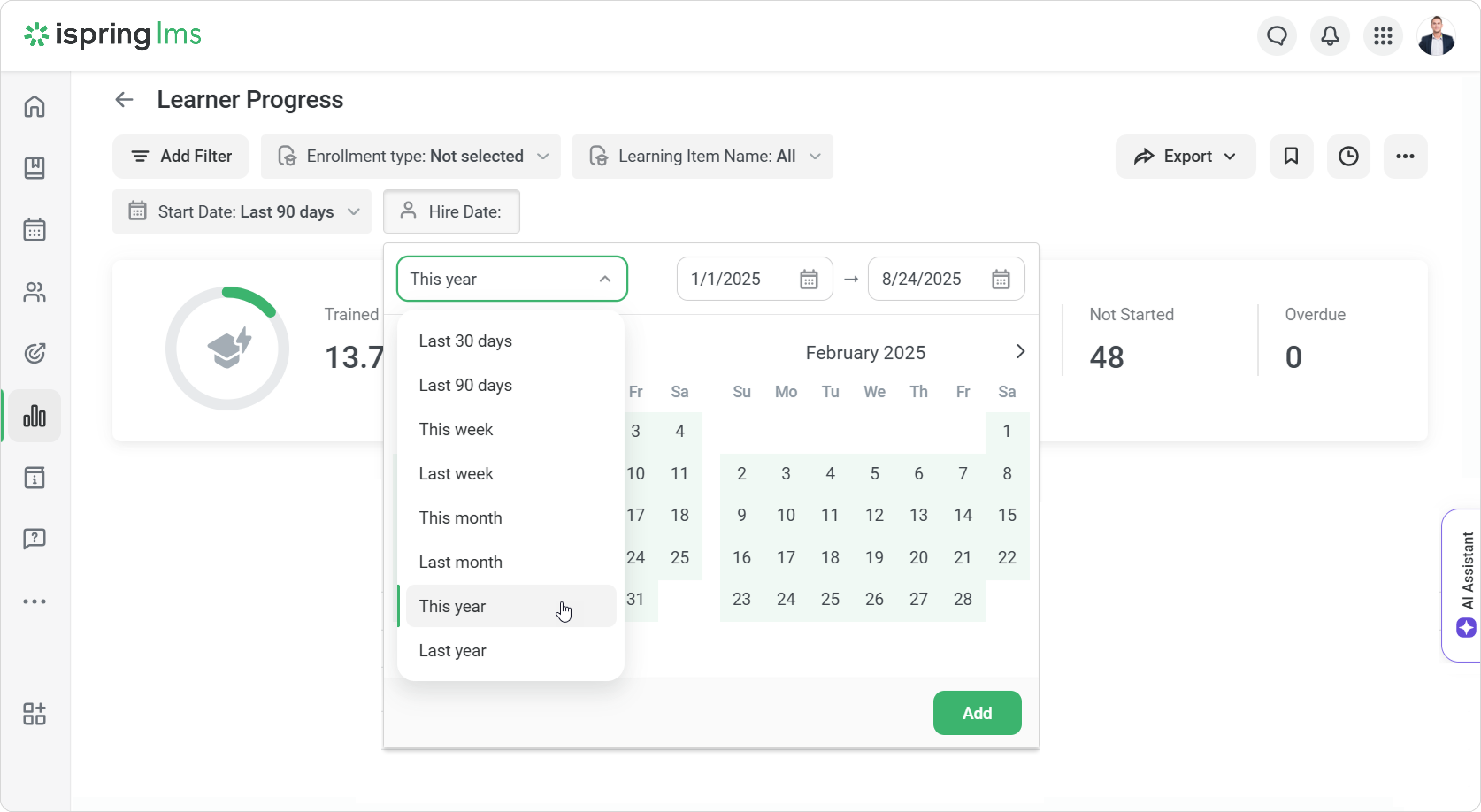 Use dates to get deeper insights from reports. For example, compare how employees with 5 years of experience learn versus those who joined the company more recently.