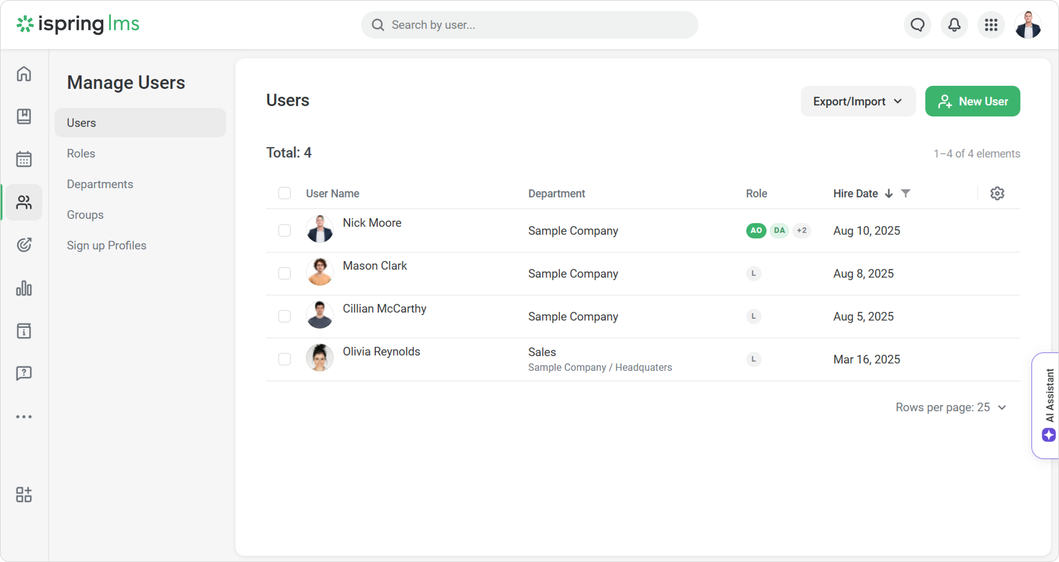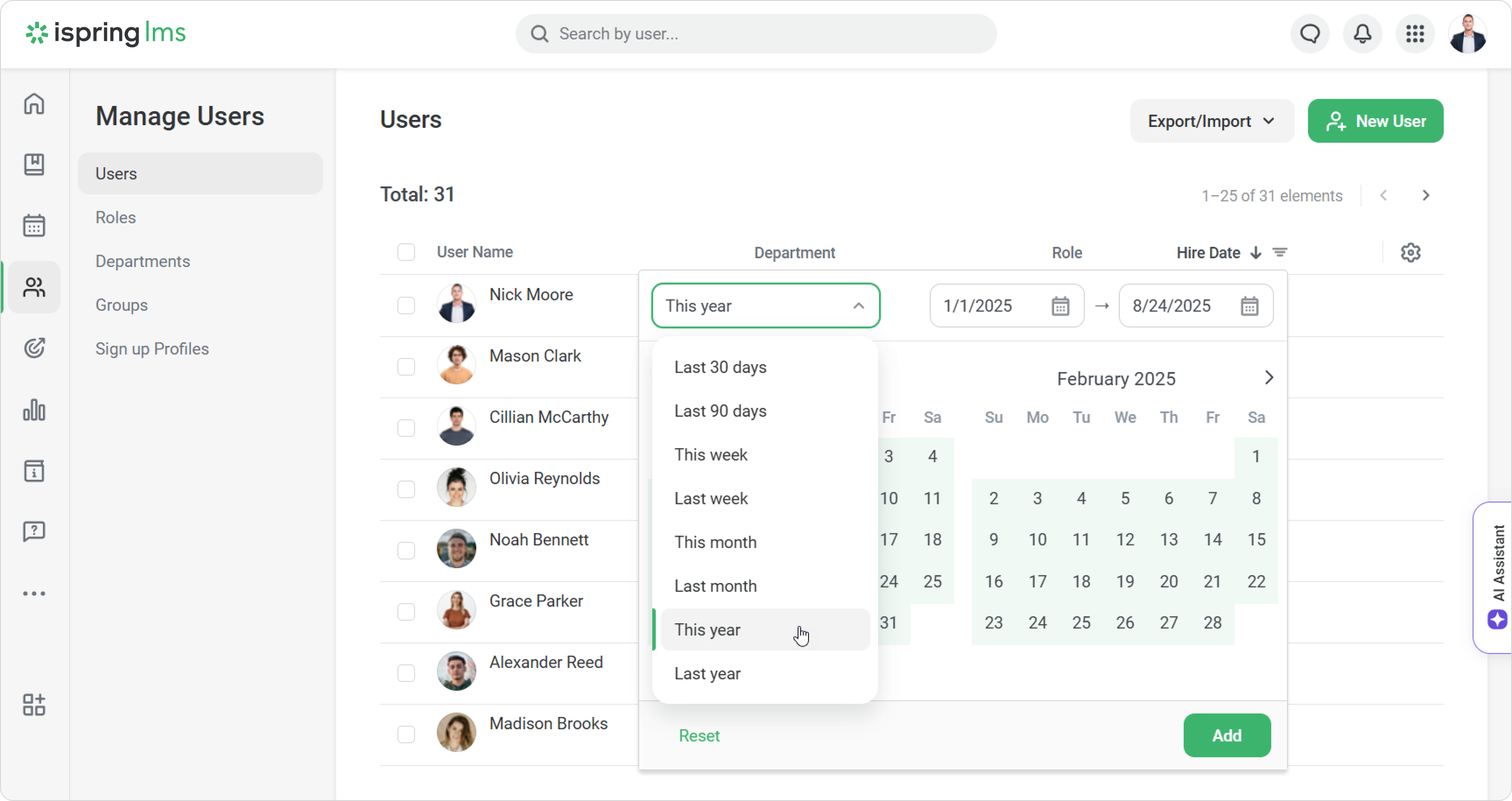 - To filter the list, select a time range and click on Add. This helps you quickly find employees by their hire date.