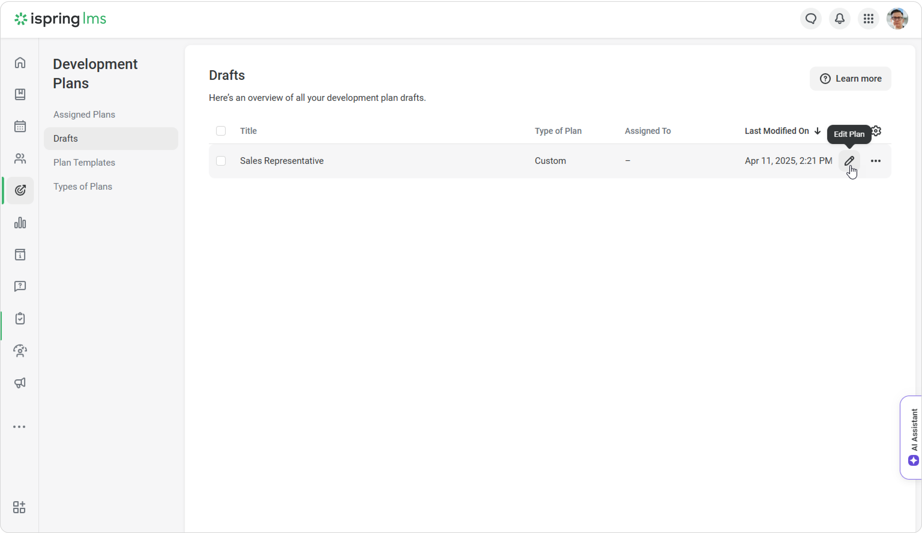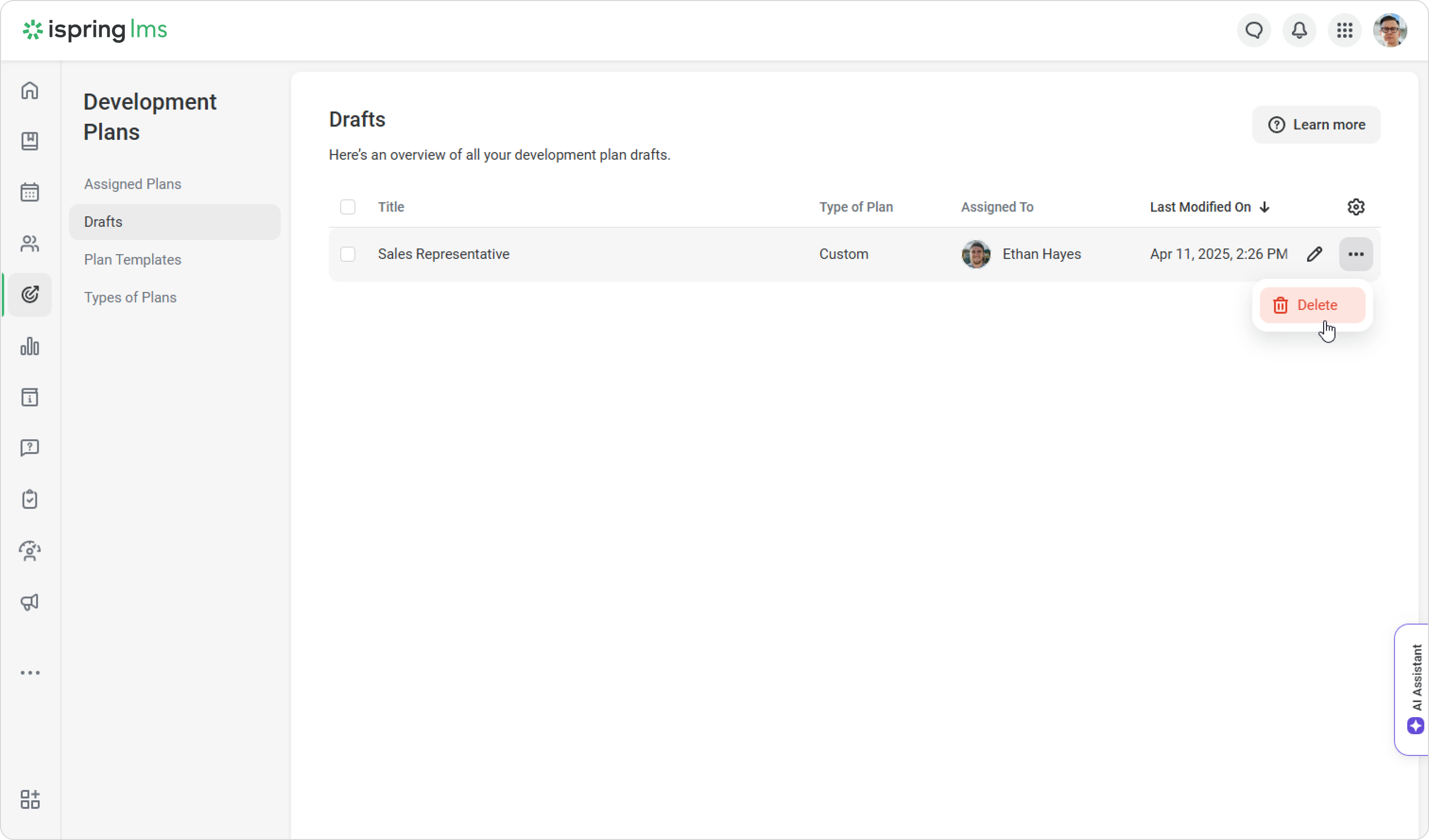 Once a draft plan has been assigned, it will be automatically deleted from the drafts.