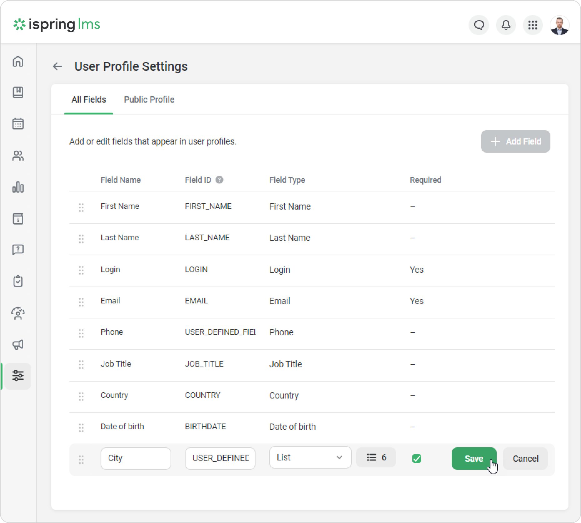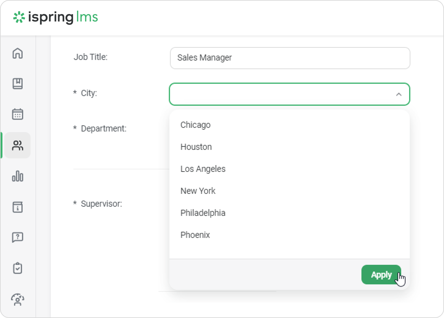 Employees can sign up in iSpring LMS more quickly by selecting their branch and city from pre-populated lists, eliminating the need for manual entry and reducing the chances of errors.