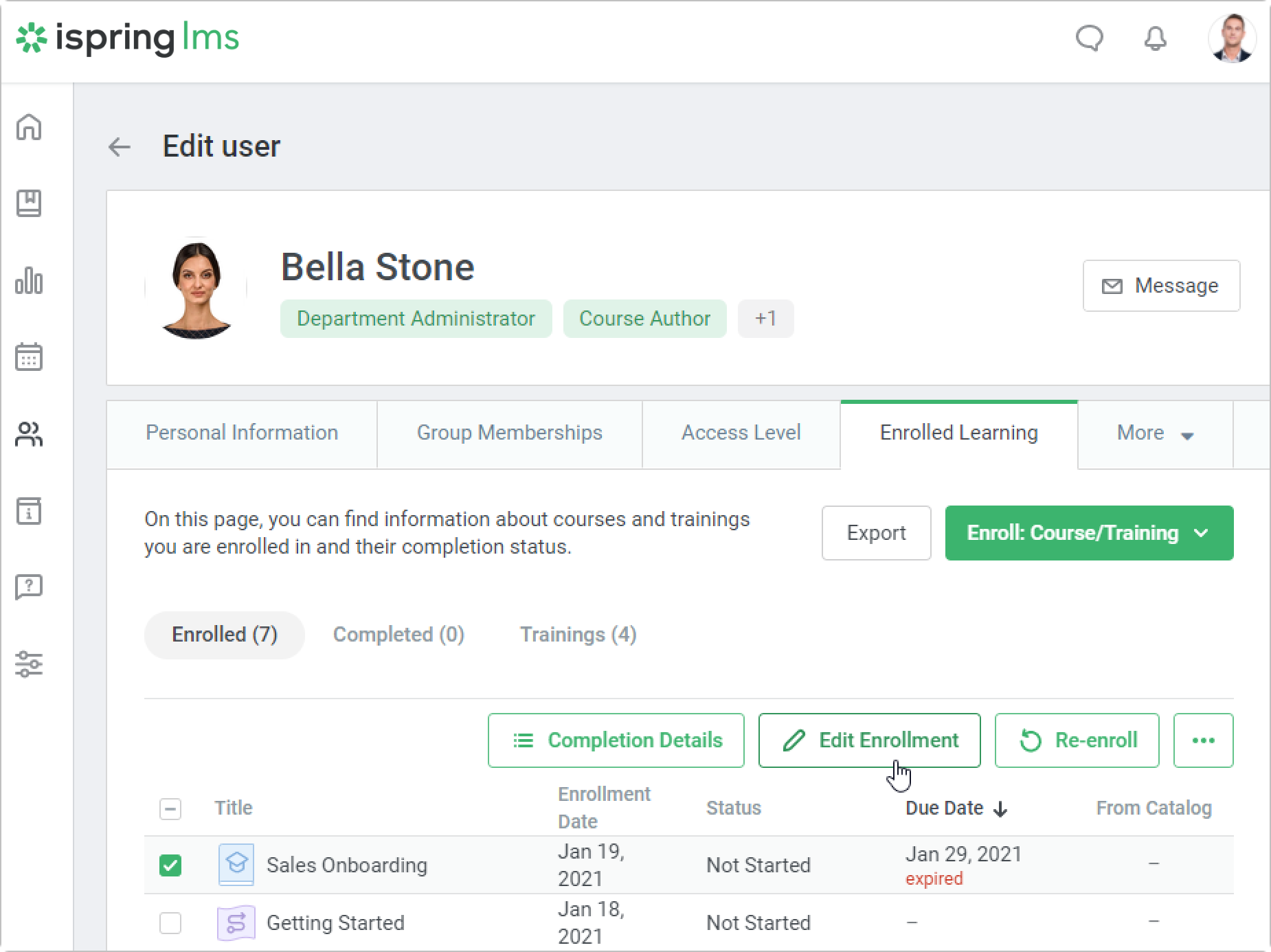 - Check users for whom you want to change the enrollment parameters, and in the top menu, click the Edit Enrollment link.