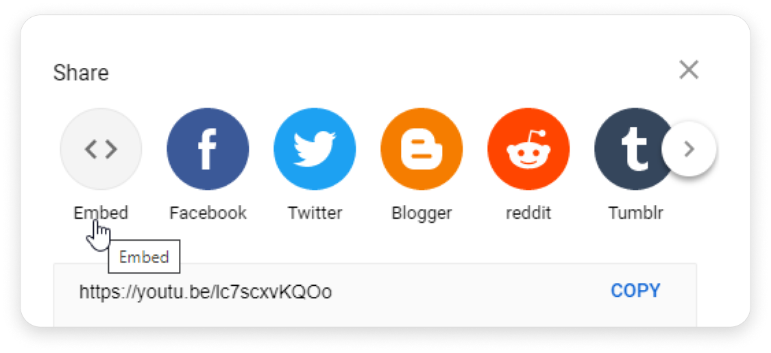 - Next, click Copy. The embed code is copied and you can now insert it into your page.
