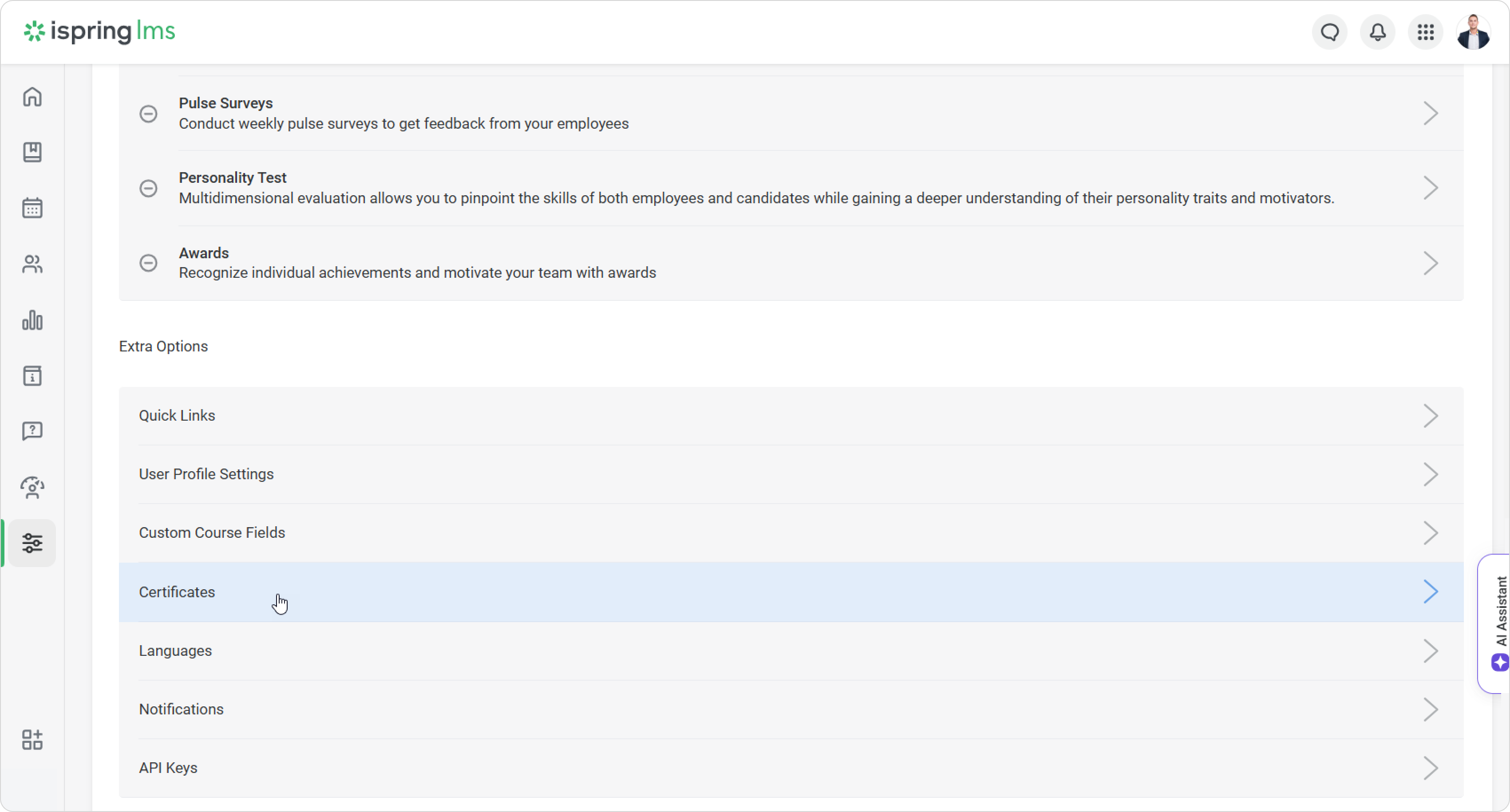 Open the Certificates report.